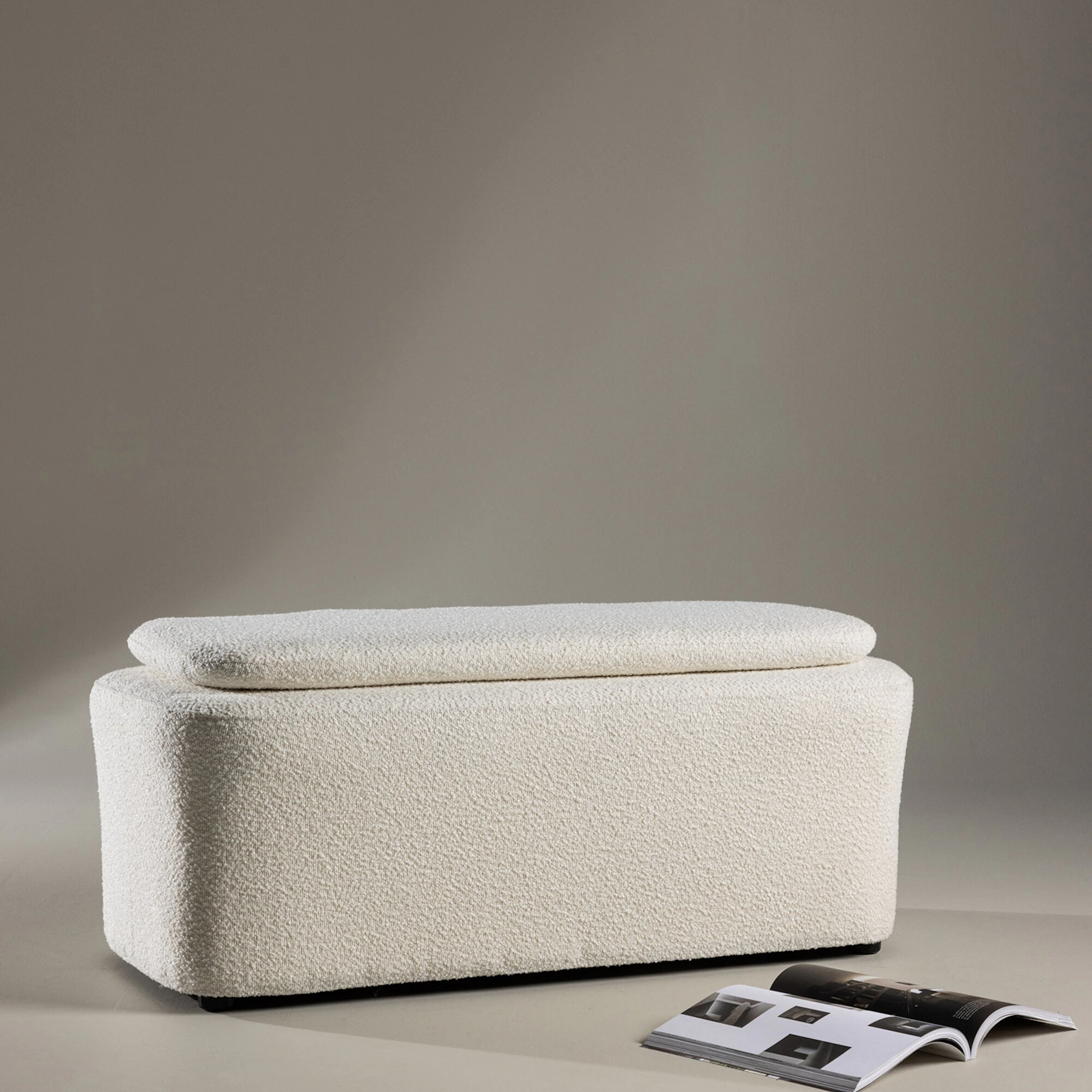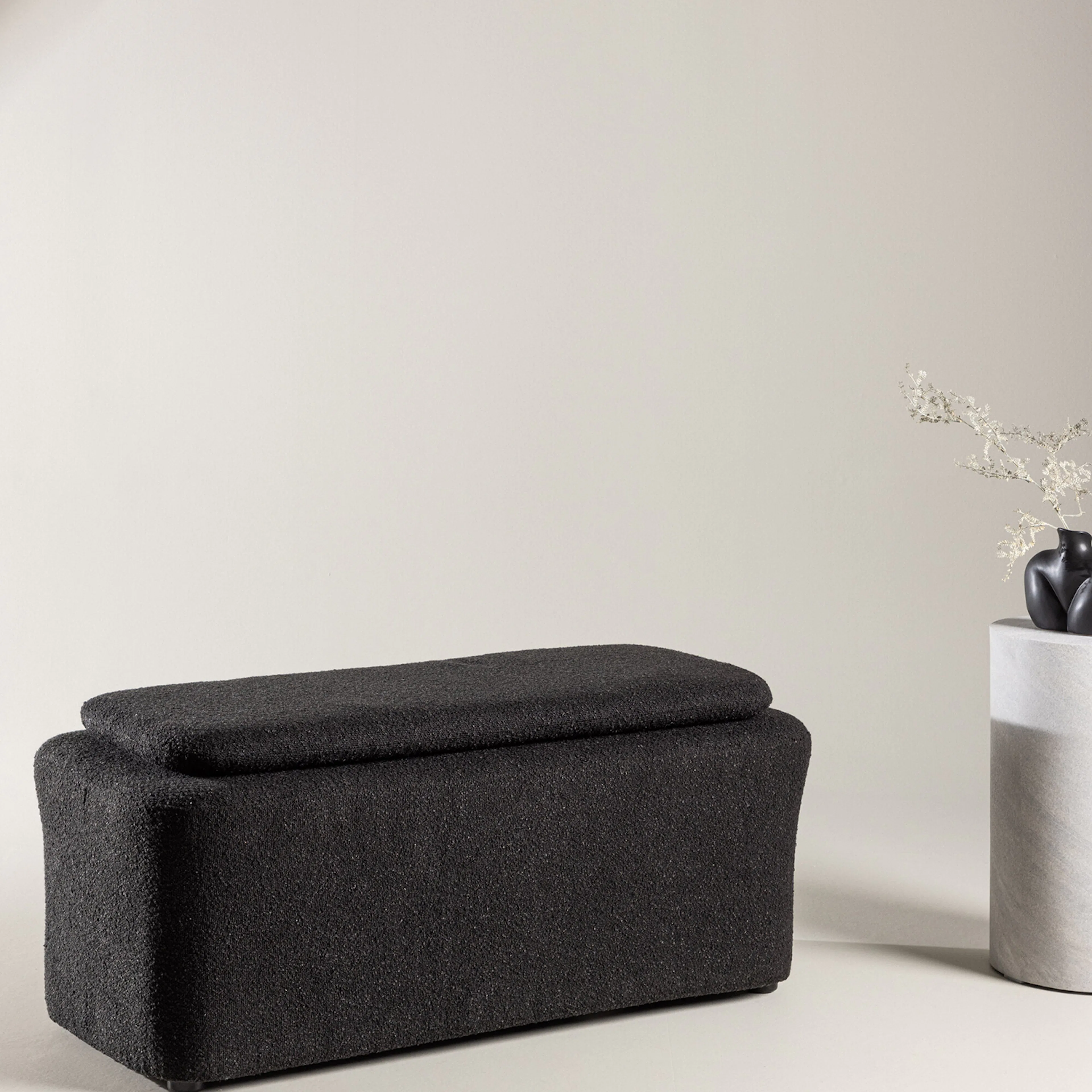 Skapa en elegant och smart inredning med den multifunktionella sittpuffen Laurel! Denna sittpuff i ett trendigt boucletyg är det perfekta tillskottet till hemmet. Oavsett om den står ensam som en snygg stilikon eller kombineras med fåtöljen från samma serie, gör Laurel sig alltid bemärkt. Sittpuffens mått: Bredd: 110cm, Djup: 50cm, Höjd: 45cm.