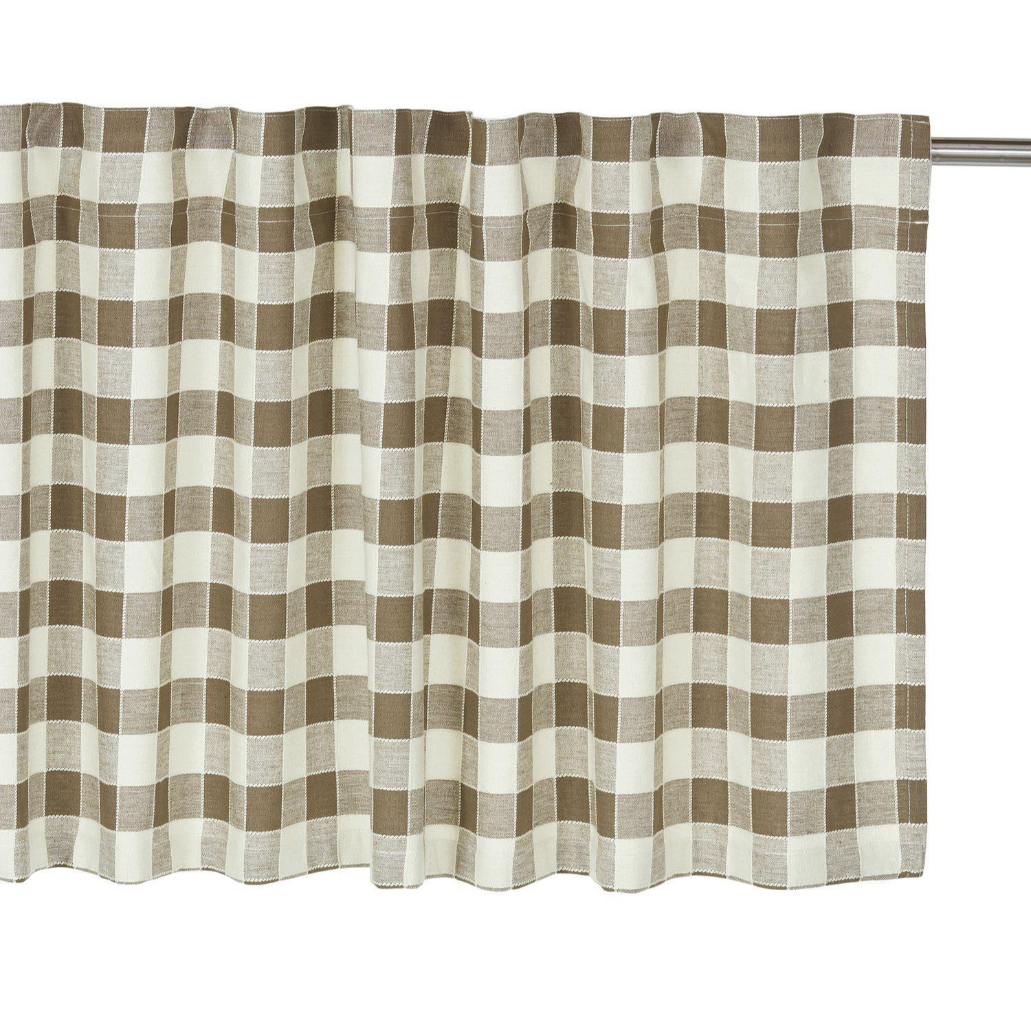 Kappa i bomullsväv och garnfärgade rutor. Har multiband i ovankant, fållade långsidor och nederkant. Multibandet är en flexibel lösning som gör att gardinen kan hängas upp antingen med fingerkrokar, räkor eller direkt på en stång beroende på vilken typ av veck och vilket fall man vill ha på gardinen.