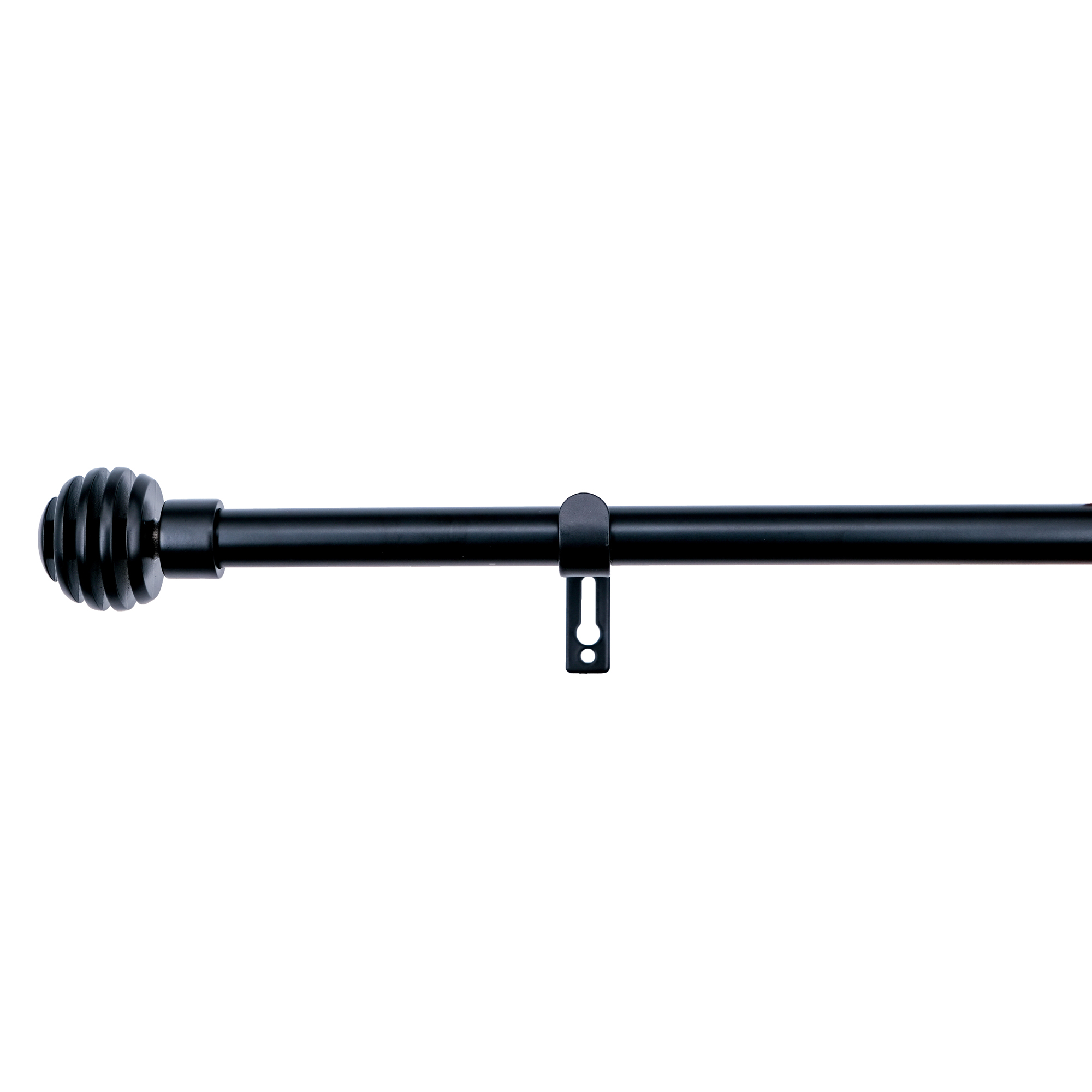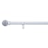 Dekorativt gardinstångset innehållande stång, änddekorer och 2 hållare. Hållarna är reglerbara från 10-15 cm och monteras på vägg med plugg och skruv.