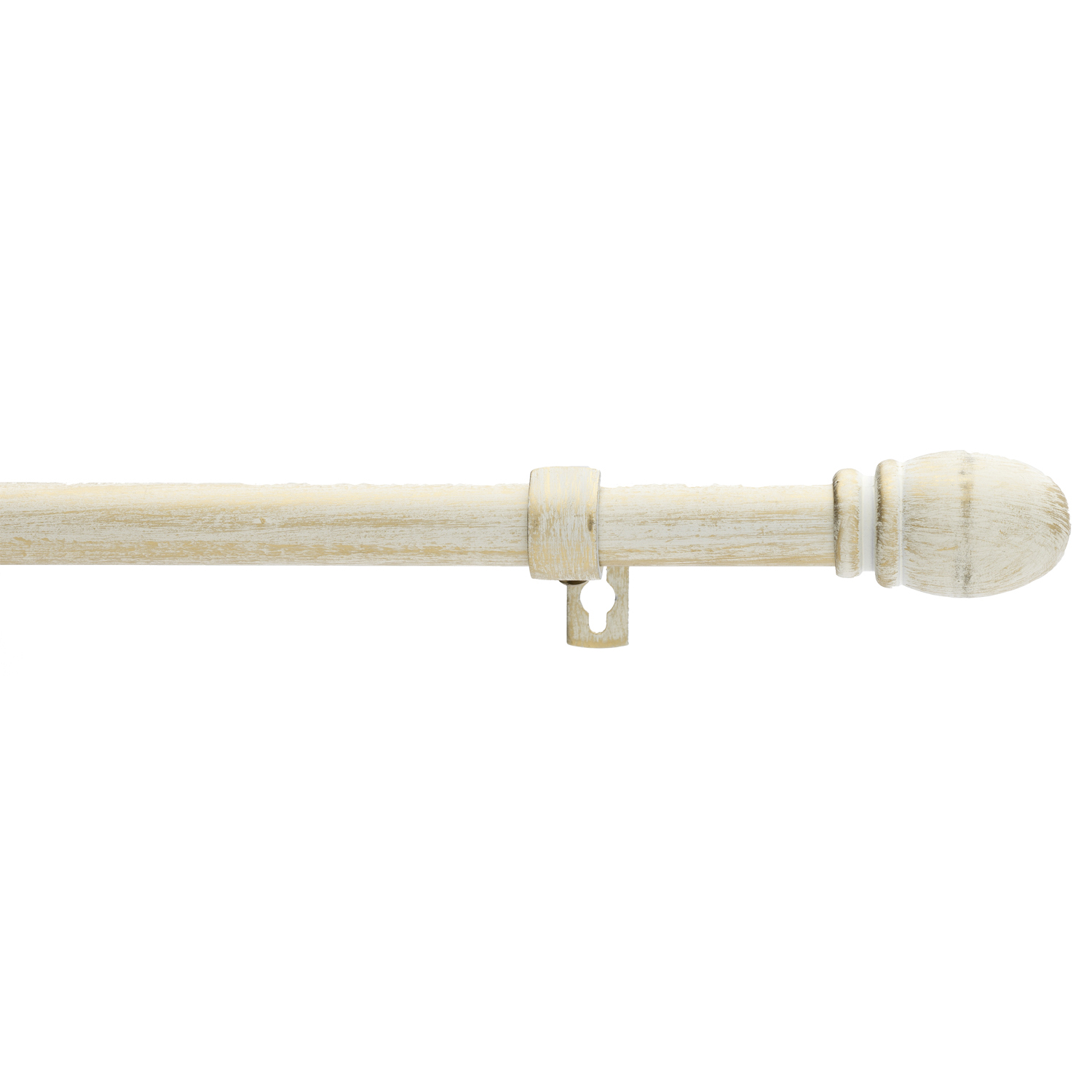 Dekorativt gardinstångset innehållande stång, änddekorer och 2 hållare. Hållarna är reglerbara från 10-15 cm och monteras på vägg med plugg och skruv.