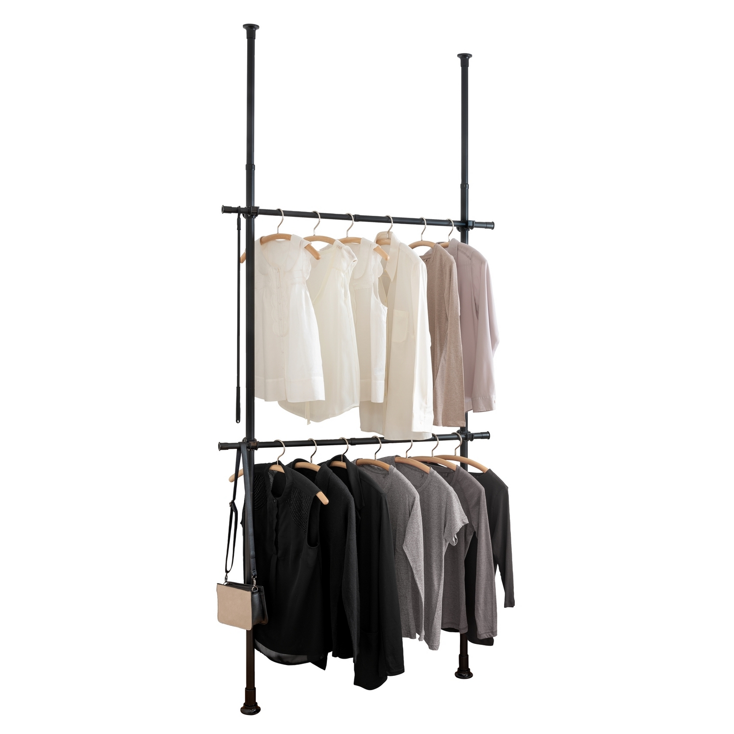 Detta anpassade organisationssystem för förvaring av kläder är både stabilt och utbyggbart. Den robusta konstruktionen i pulverlackerad metall säkerställer hög stabilitet. Systemet kan utökas i höjd från 165 till 300 cm och i bredd från 75 till 120 cm. Det är enkelt att montera tack vare det praktiska klämsystemet som inte kräver borrning eller skruvar.