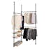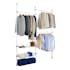 Detta individuellt justerbara organiseringssystem kan enkelt klämmas mellan golv och tak. Det har tre höjdjusterbara klädstänger som kan anpassas oändligt. Systemet inkluderar också två justerbara förvaringskorgar och en hänganordning.