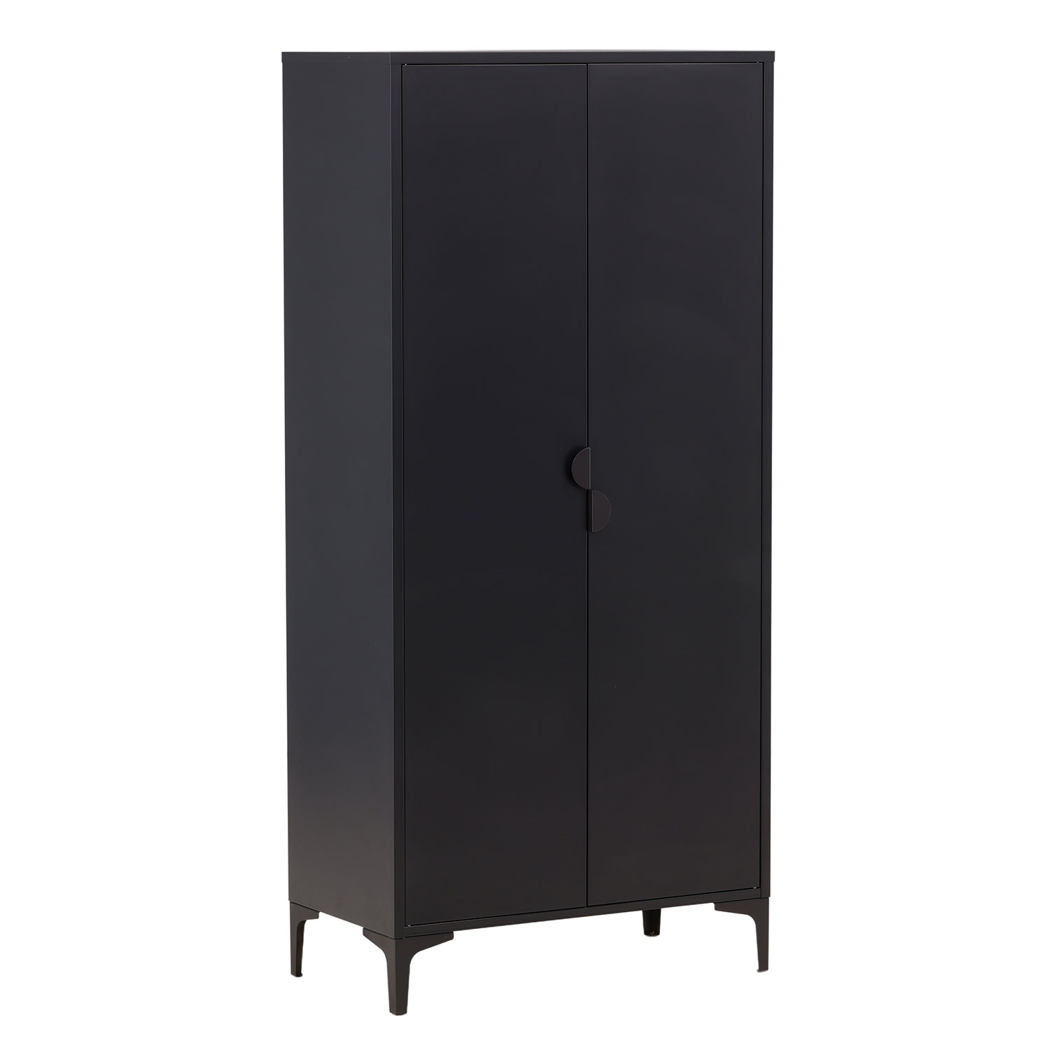 Garderob från Venture Home. Garderoben från serien Piring är det perfekta tillskottet till sovrummet! Den här höga garderoben i stål har två dörrar som öppnar upp till fyra hyllplan och även rymmer plats för hängare så att de nystrukna kläderna slipper skrynklas. Piring lyfts upp av fyra nätta ben som skapar ett luftigt intryck och också underlättar för dammsugningen.