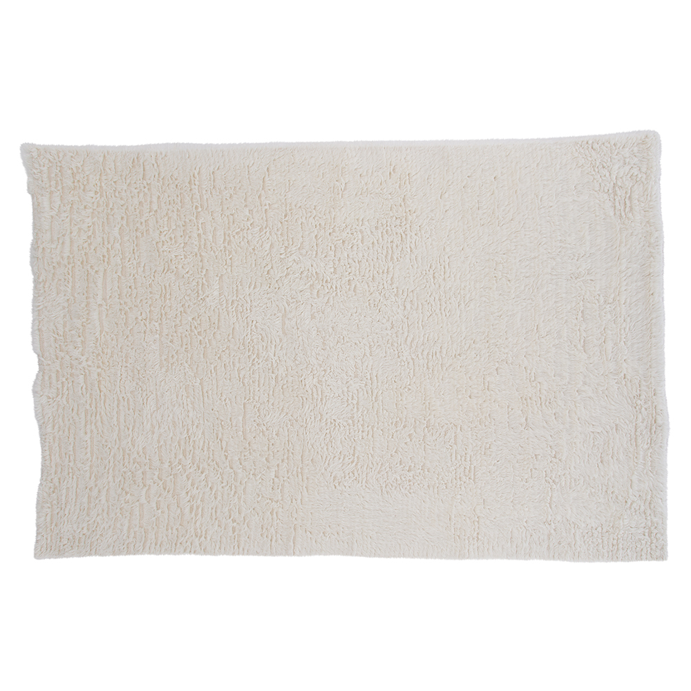 Matta Leiko i handvävd beige ull ger en mysig känsla till rummet.