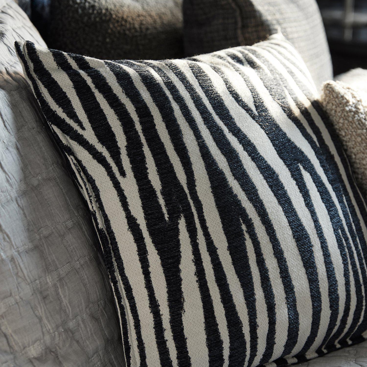 Mönstrat kuddfodral med vävt mönster i sammetsrelief. Smal dekorsöm längs alla 4 sidorna för att lyxigt intryck. Dragkedja i nederkant. Mått 45x45cm. Innerkudde i storlek 45x45cm med syntetfyllning ingår. Produkten är certifierad enligt STANDARD 100 by OEKO-TEX®. Certifieringen garanterar att produkten är testad och fri från ämnen som kan vara skadliga för hälsan och miljön.