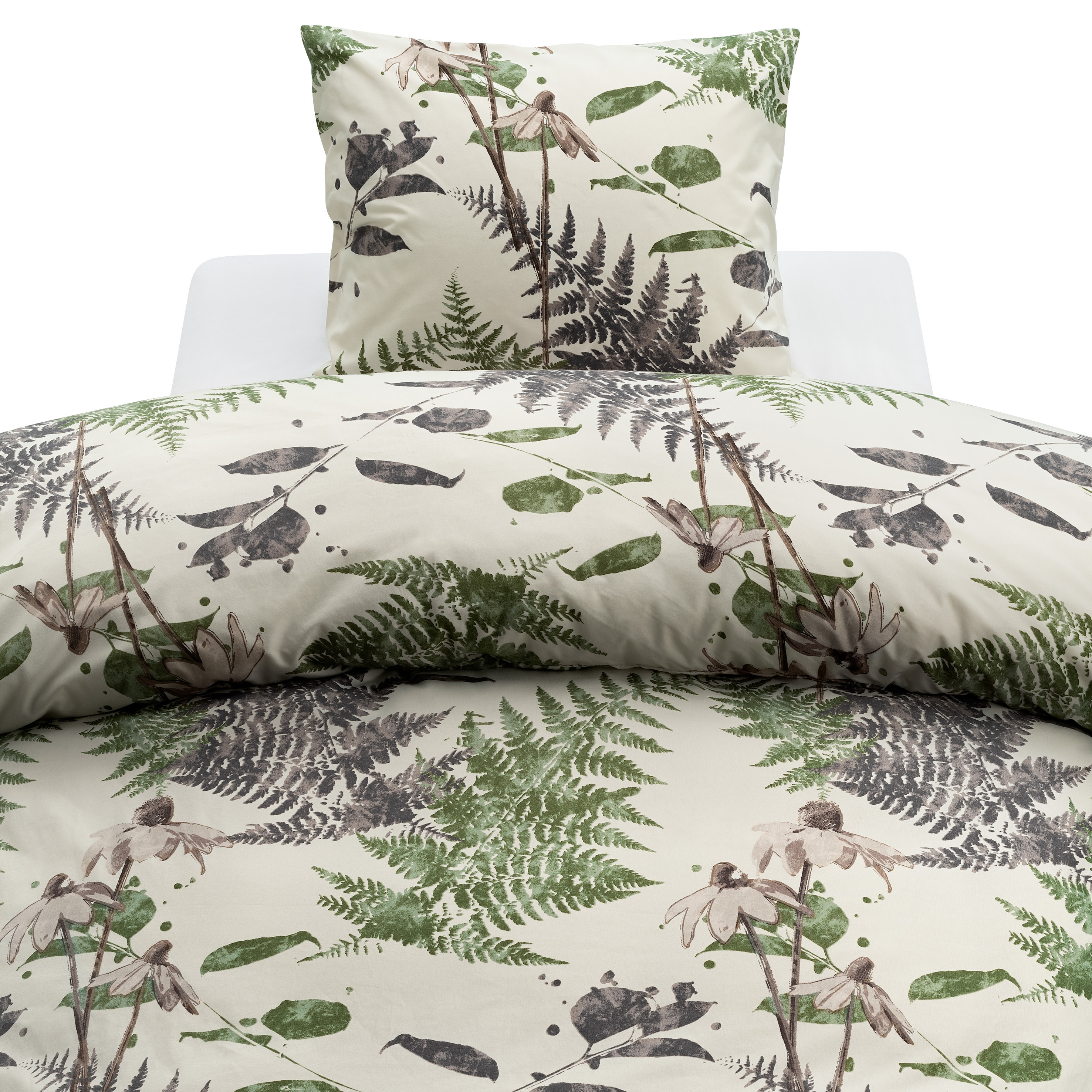 Harmony bäddset tillverkat av 100% polyester microfiber. Motiv med blad och växter. Bestående av ett påslakan (150x210 cm) och ett örngott (50x60 cm).
