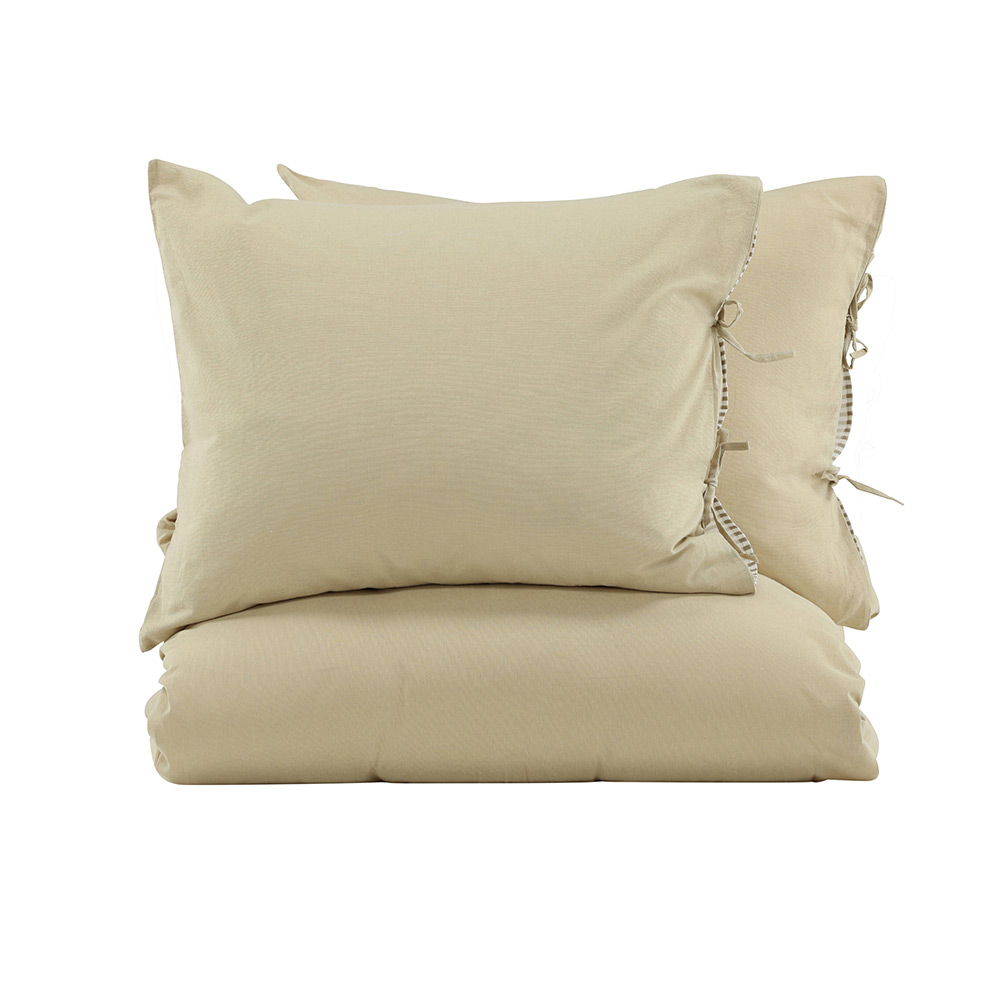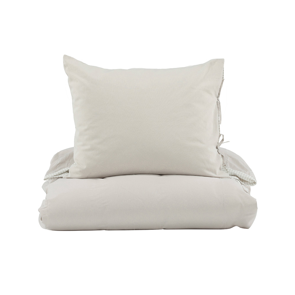 Jenna påslakanset i härligt linne och bomull! Linne och bomull är en fantastiskt combo som skapar harmoni i sovrummet och blir finare med åren. Skön mot huden och absorberar bort fukt vilket gör att det blir svalare att sova. Stl 150x200 i färgen beige. Skötselråd: Maskintvätt 60 grader.