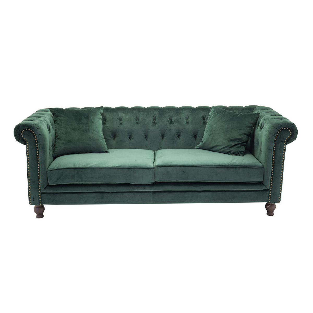 Kombinera modern design med traditionsrikt hantverk och inred ditt hem med en vacker färgklick! Velvet är en stilsäker soffserie i Chesterfield design med läckert sammetstyg och dekorativa djuphäftade knappar. Den här rymliga och bekväma 3-sits soffan med rak design och sammet inger en konstnärlig och vacker känsla till ditt hem.