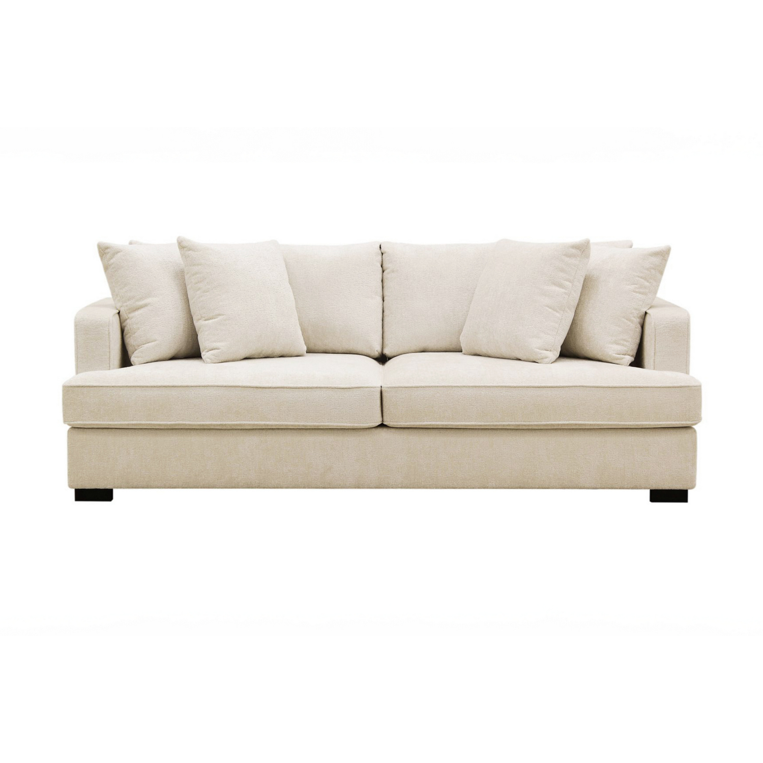 Soffan har en tidlös, enkel design med rena linjer och skön sittkomfort som gör den till en soffa för alla tillfällen. 3-sits soffa med svårslagen sittkomfort. Matchande prydnadskuddar medföljer. Välj mellan långluggad sammet, bouclé eller tygklädselFinns i flera olika färger. Stabil stomme i trä med skumstoppade sittplymåer för utmärkt sittkomfort. Ryggdynor stoppade med fiberboll och skuret skum vilket erbjuder bra stöd. Avtagbar klädsel på sitt- och ryggdynor samt vändbara ryggdynor som förlänger hållbarheten.