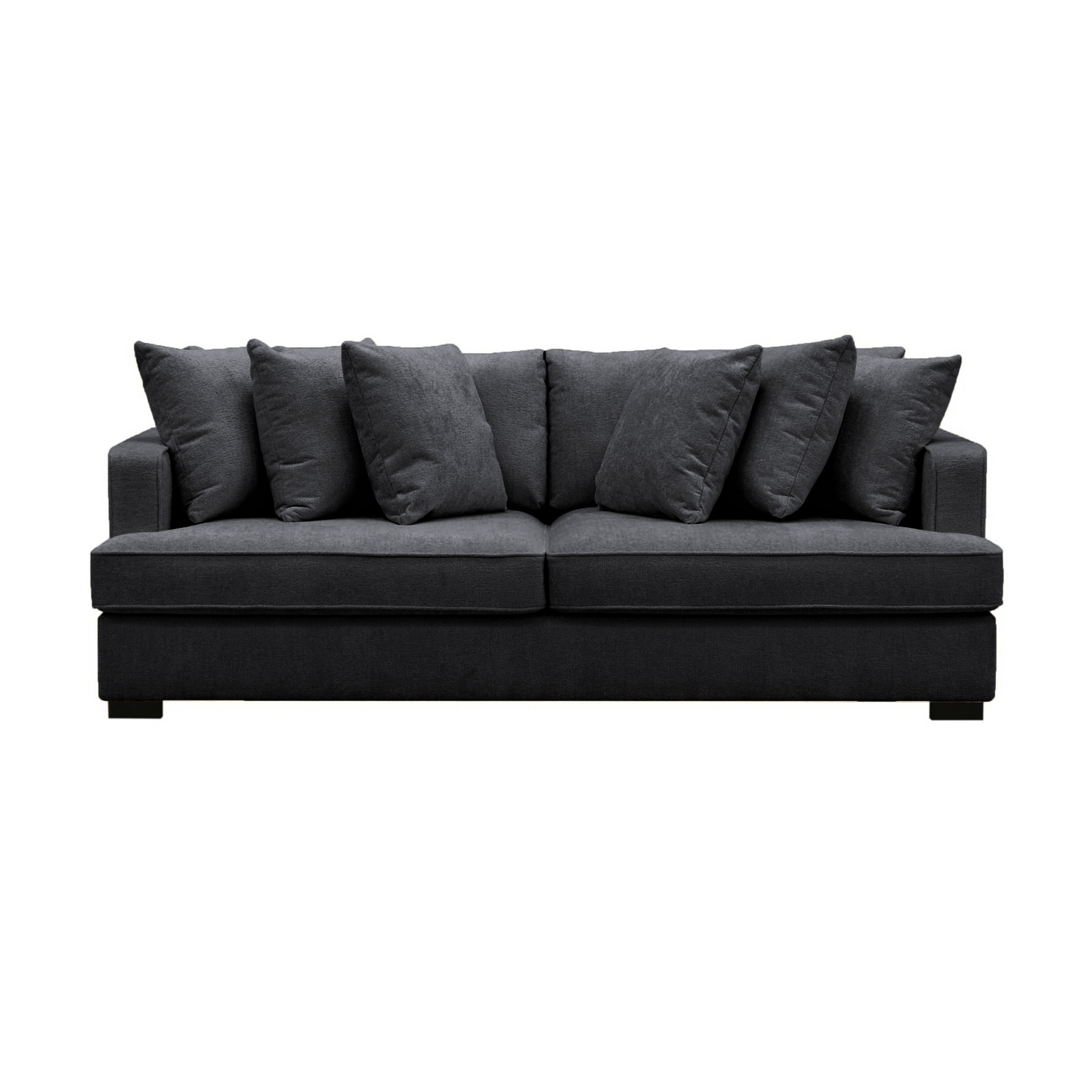 Soffan har en tidlös, enkel design med rena linjer och skön sittkomfort som gör den till en soffa för alla tillfälle. 3-sits soffa med hel dyna och svårslagen sittkomfort med matchande prydnadskuddar medföljer. Välj mellan långluggad sammet, bouclé eller tygklädsel. Finns i flera olika färger. Stabil stomme i trä med skumstoppad hel sittplymå för utmärkt sittkomfort. Ryggdynor stoppade med fiberboll och skuret skum vilket erbjuder bra stöd. Avtagbar klädsel på sitt- och ryggdynor samt vändbara ryggdynor som förlänger hållbarheten.