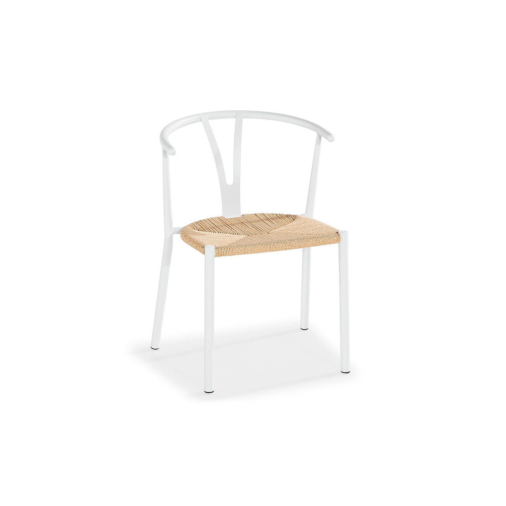 Matstol In Living Elysia är en elegant stol inspirerad av dansk design. Den är tillverkad av metall med en flätad sits. Stolens stomme är av metall.