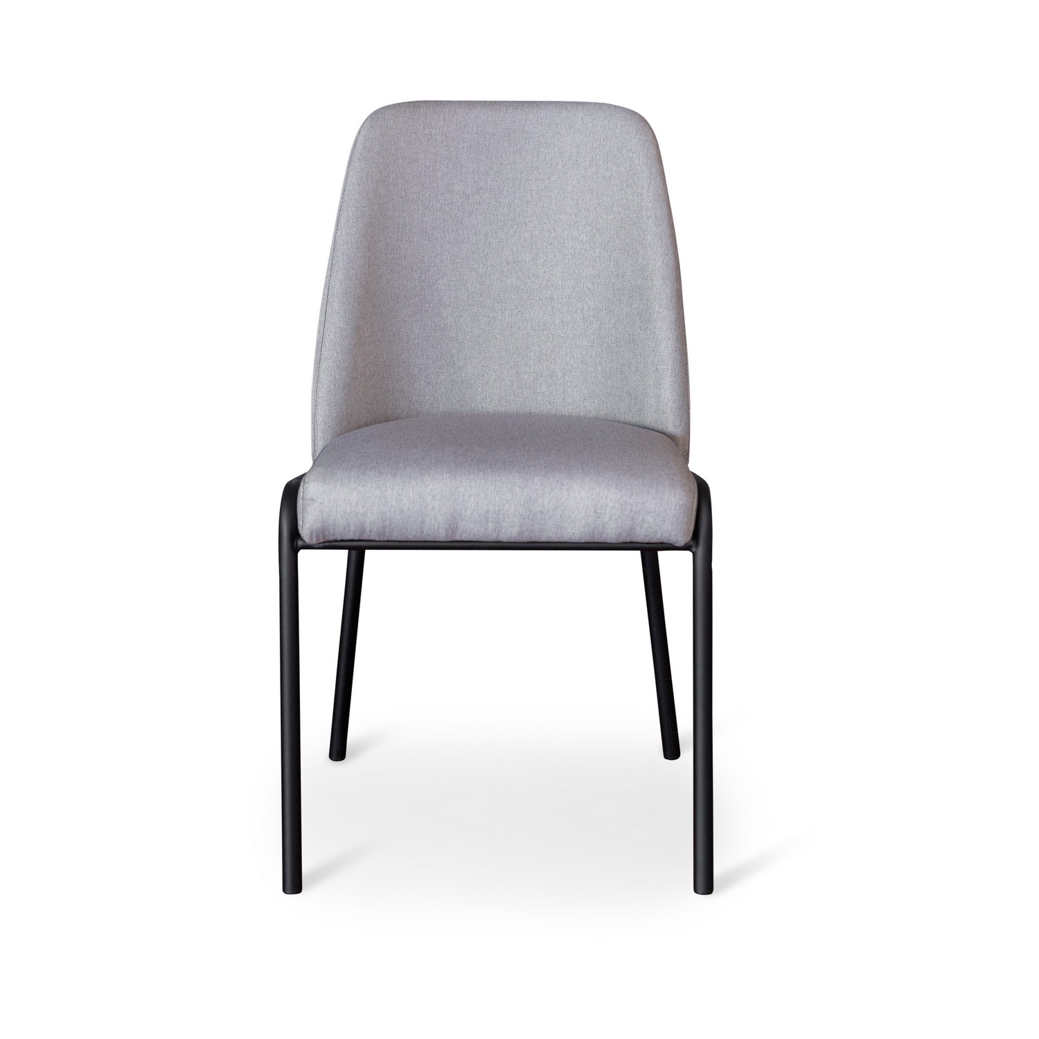 Julian stol i modern design med ljusgrått tyg och svarta ben i metall. Både ryggstödet och sitsen är stoppade, vilket ger en bekväm sittkänsla.