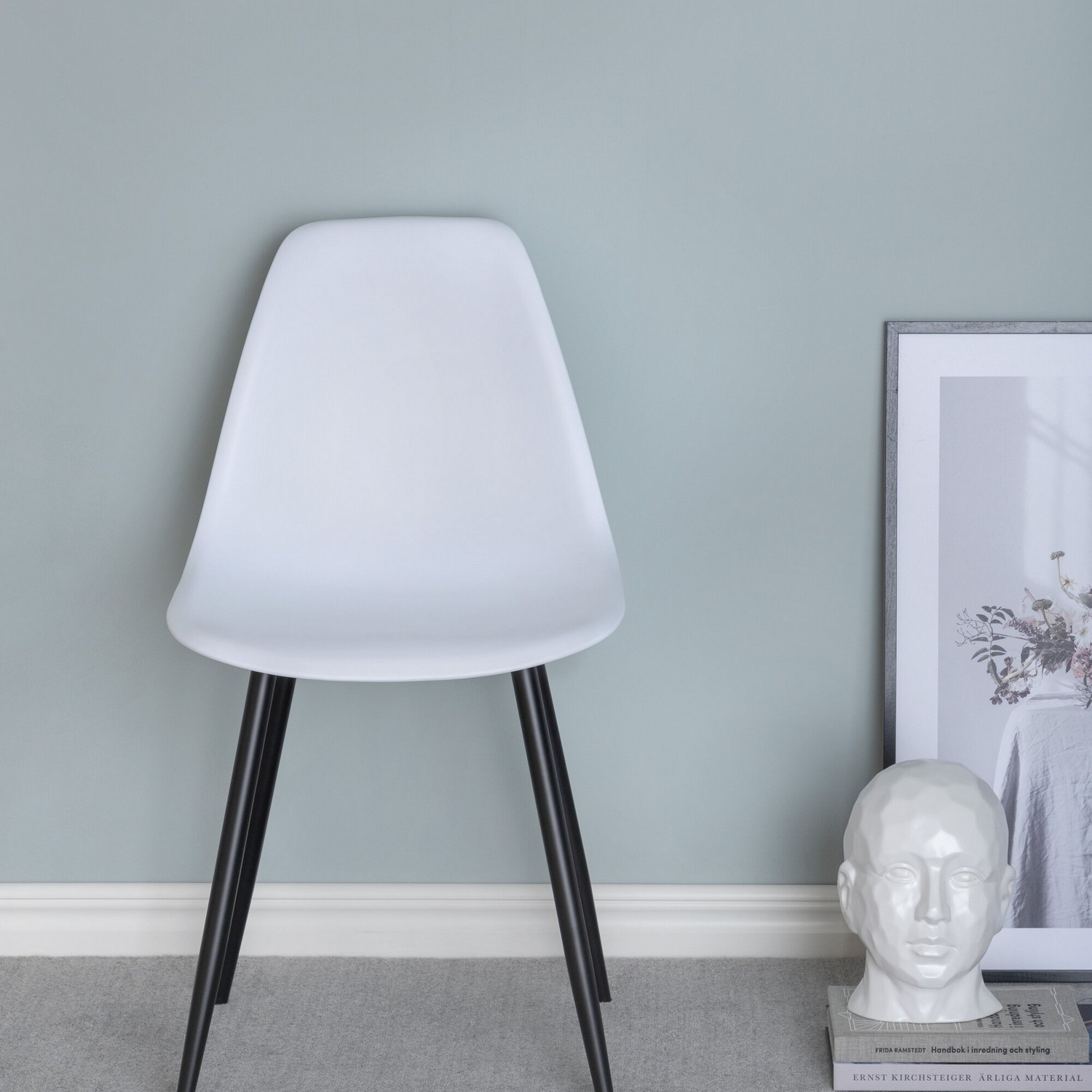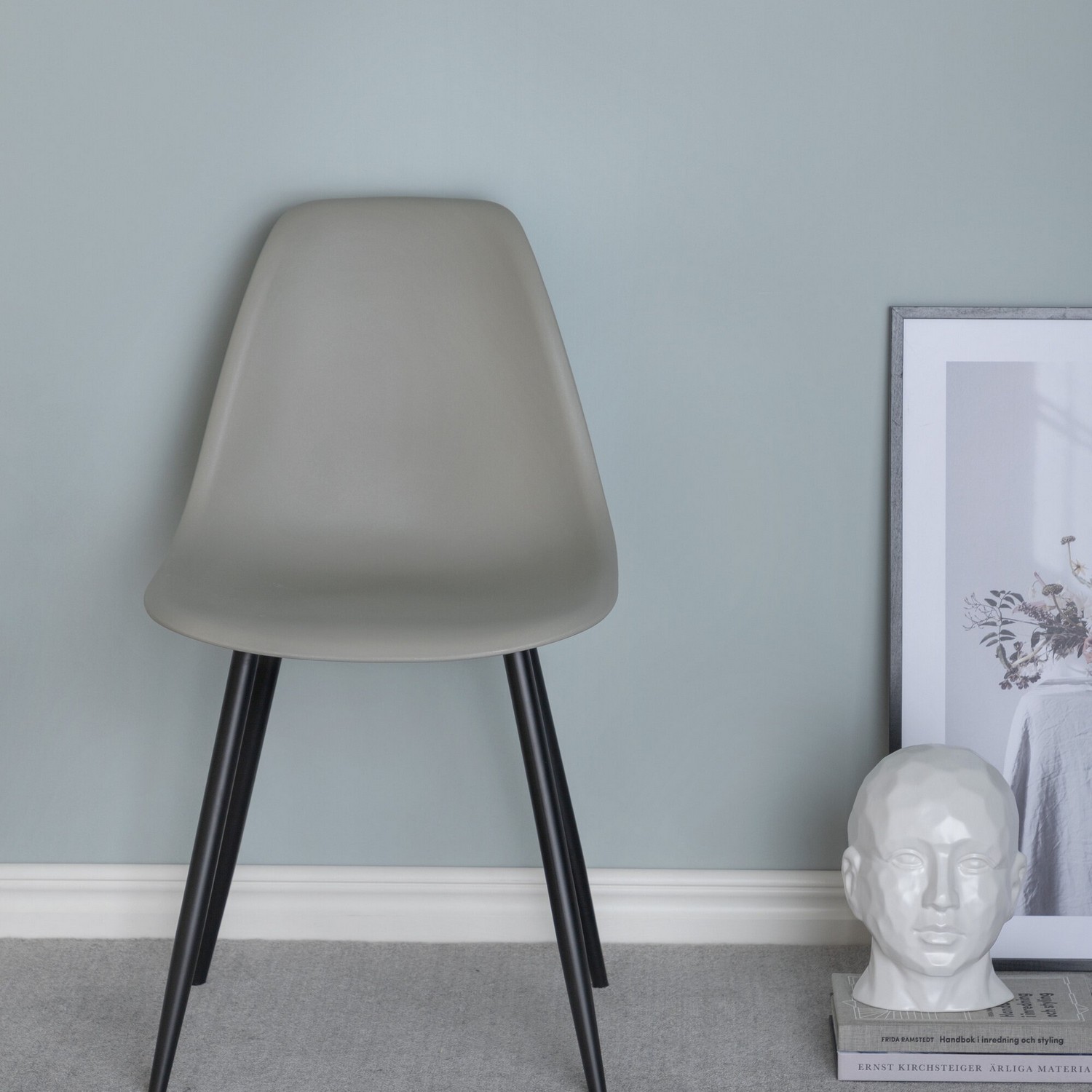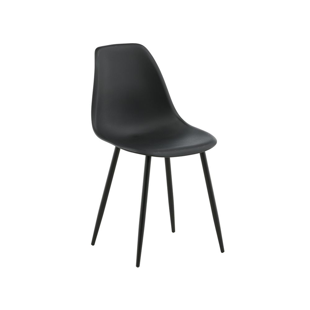 Polar är en matstol i modern design med ben i svart pulverlackerad metall. Stolen har en skålformad, rundad rygg och sits i helgjuten plast.