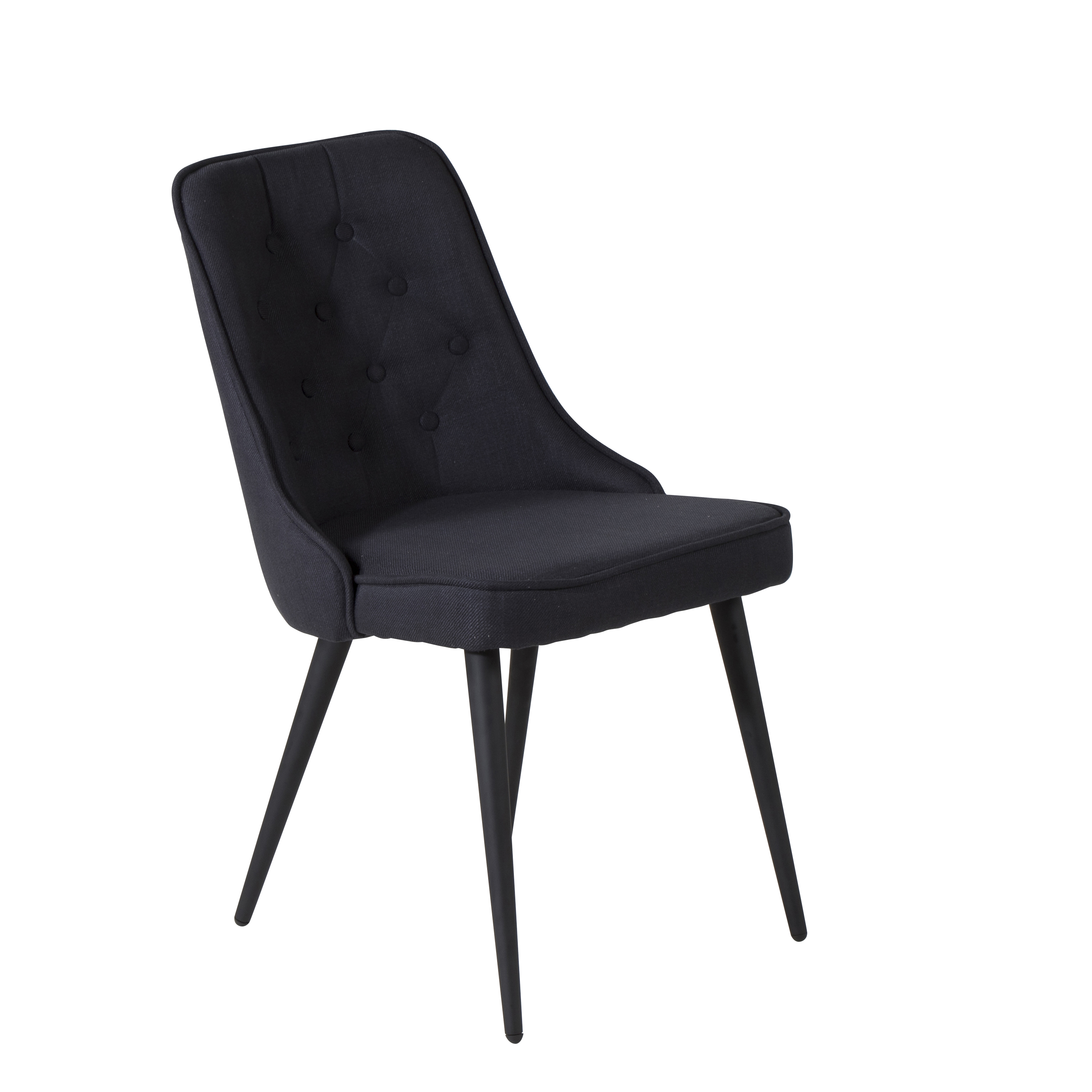 Velvet är en matstol i helklädd design med ben i pulverlackerad metall. Ryggen har knappar och dekorsöm. Rygg samt sits har polyestertyg med mjuk stoppning.