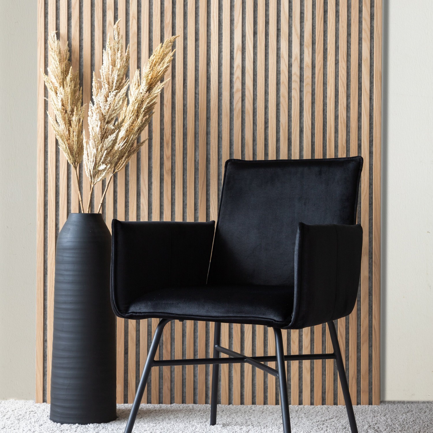 Stol Venture Home Petra är en stol med en sits i svart färg och stolsben i järn. Stolen har en sits i sammet och polyesterlinne.