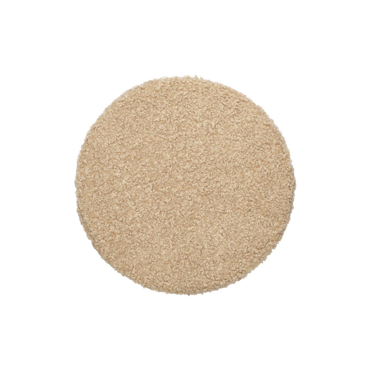 Rund stolsdyna i ullig fårskinsimitation på framsidan och mjukt tyg med halkskydd på baksidan. Dragkedja i sidsömmen. Dynan är 38cm i diameter och har en 4cm hög skumplatta som fyllning. Produkten är certifierad enligt STANDARD 100 by OEKO-TEX®. Certifieringen garanterar att produkten är testad och fri från ämnen som kan vara skadliga för hälsan och miljön.
