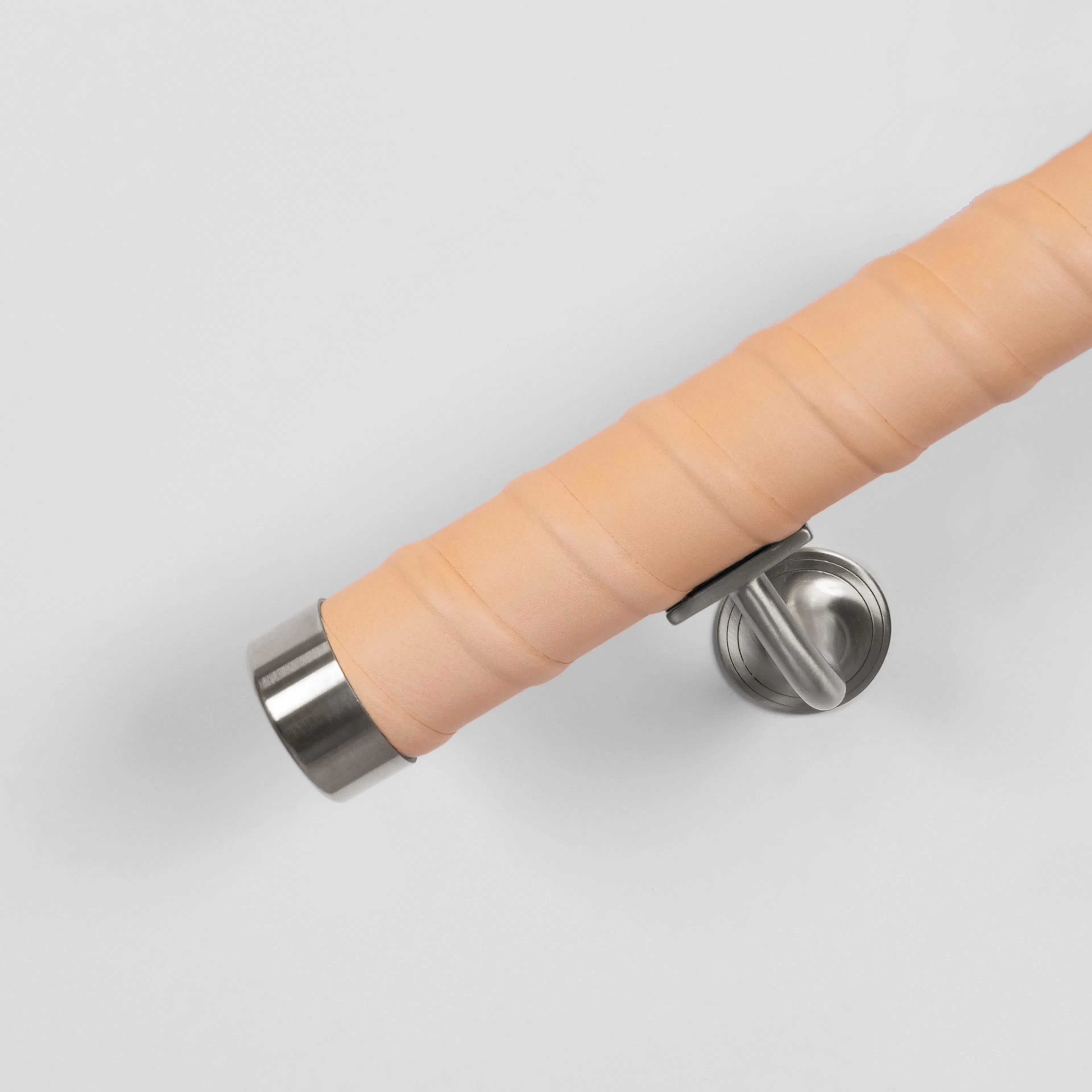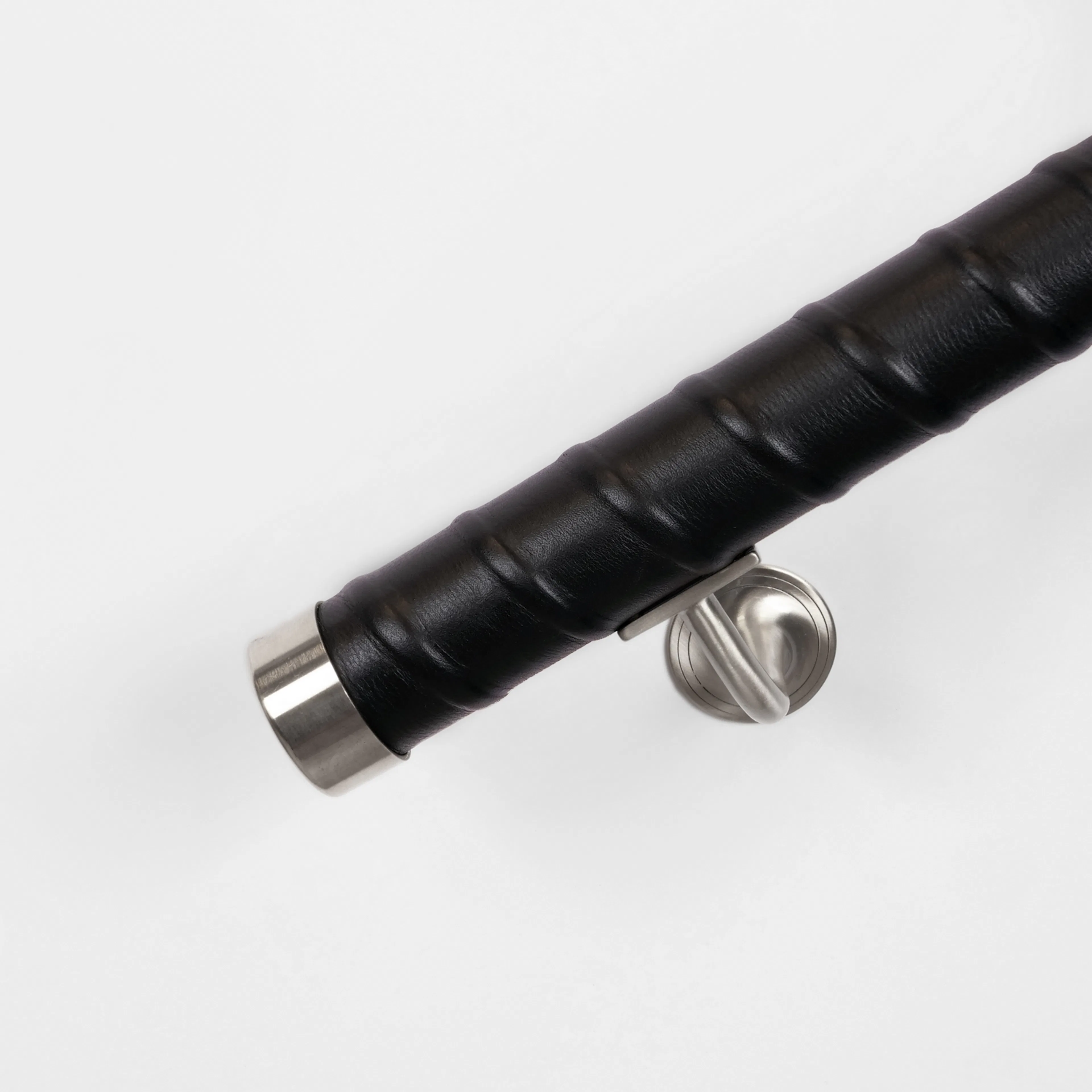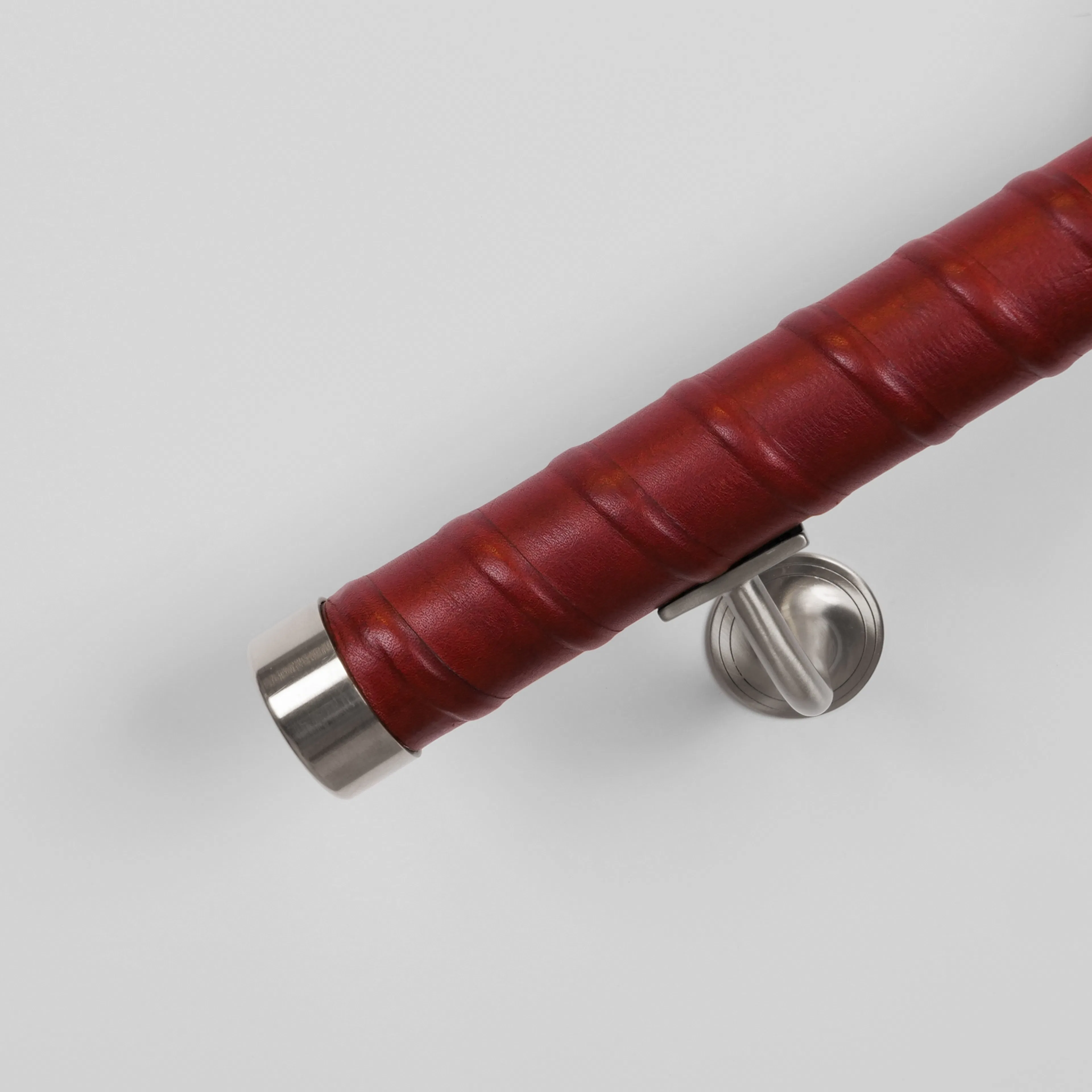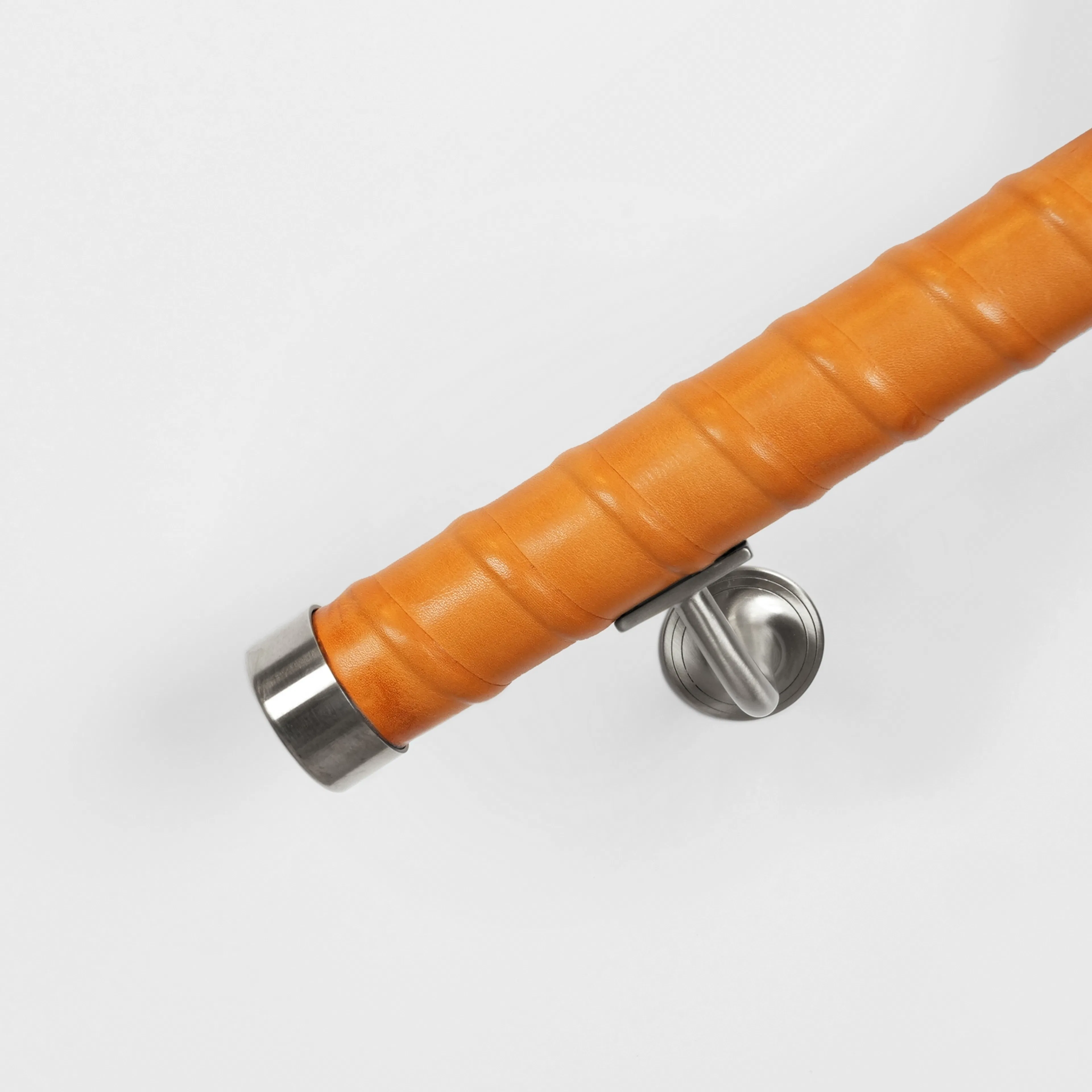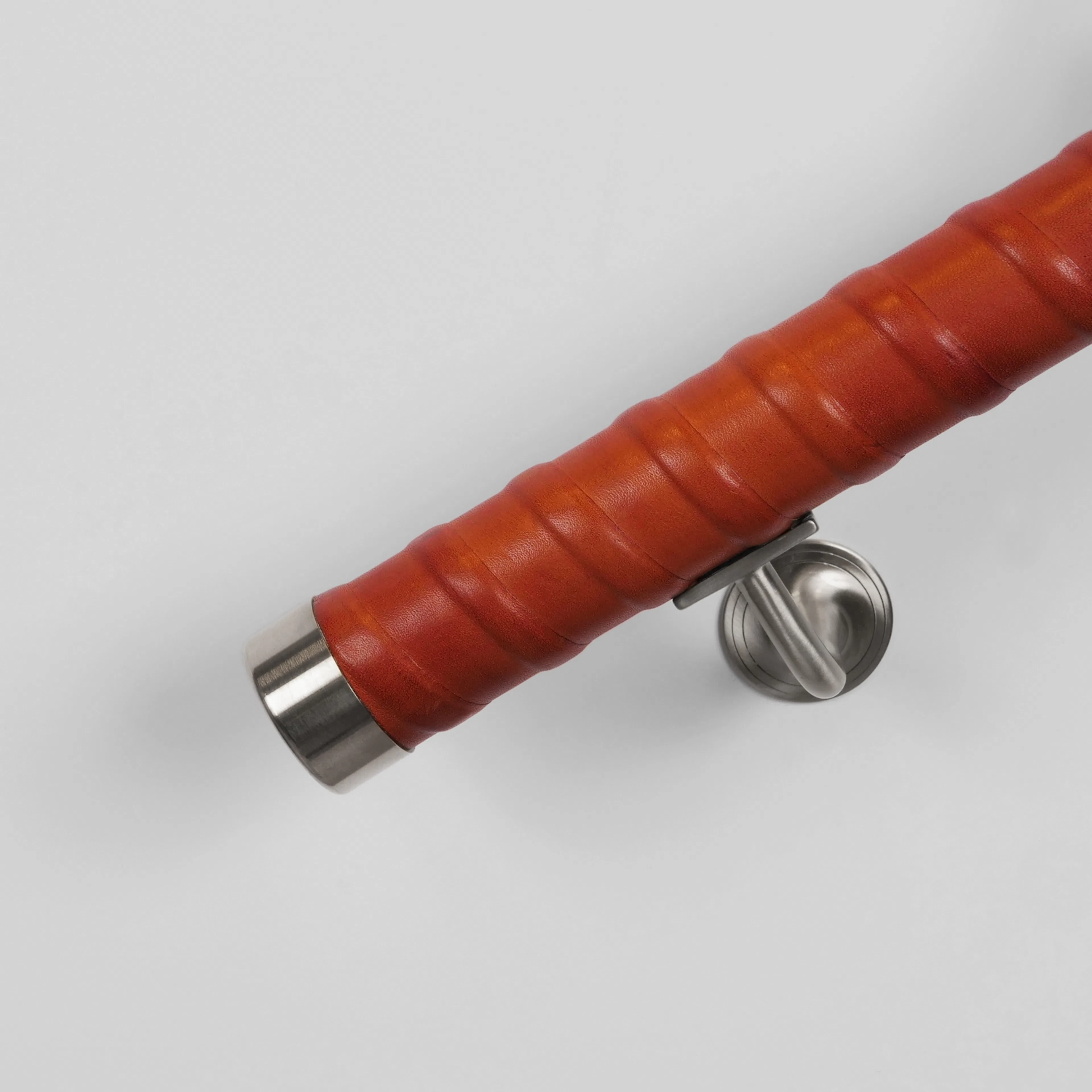 Ledstång Herrljunga Ledstångsfabrik Läderlindad är en rak, läderlindad ledstång med vegetabiliskt garvat skinn från Tärnsjö. Ledstången har läderlindade avslut, ändhylsor i mässing samt rostfritt stål finns som tillbehör (ingår ej). Diameter 42 mm.