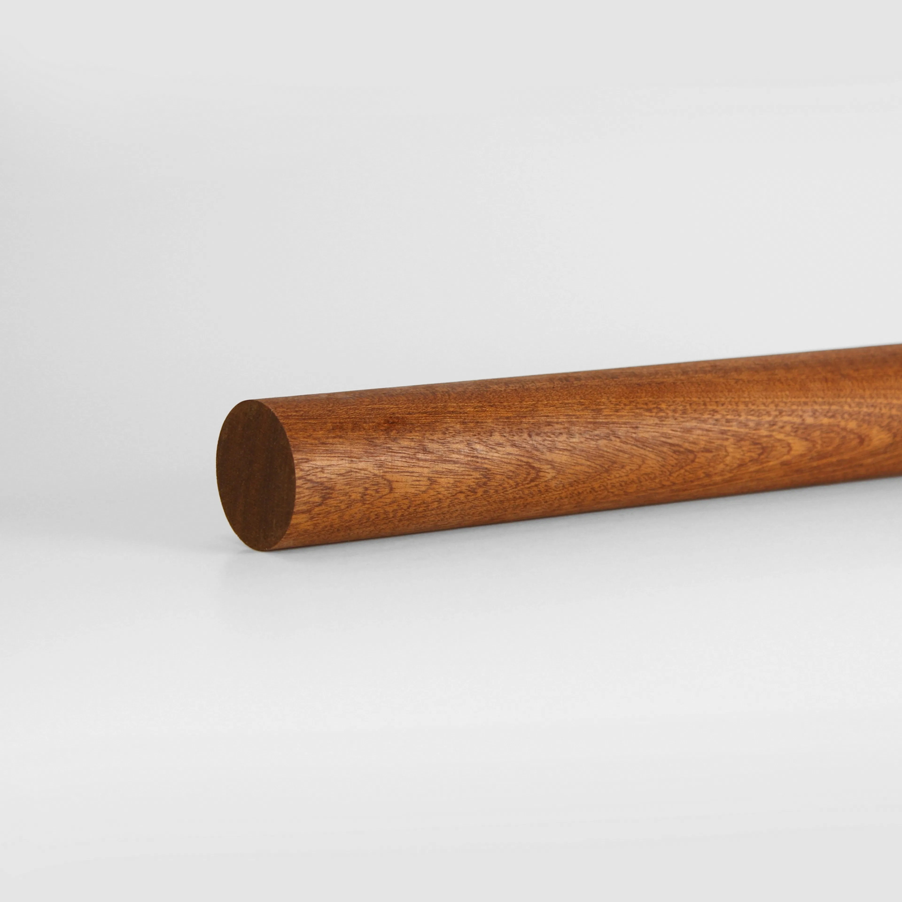 Ledstång Herrljunga Ledstångsfabrik Mahogny 42 mm är en svarvad, rund ledstång med rakt avkapade kanter. Borrmall ingår för att lätt kunna borra hål i ändar och kombinera med någon av Herrljunga Ledstångsfabriks svarvade ändknoppar eller ändhylsor. Komplettera med väggfästen.