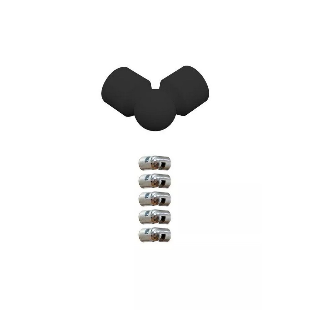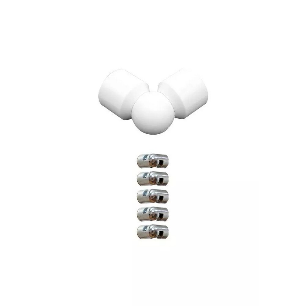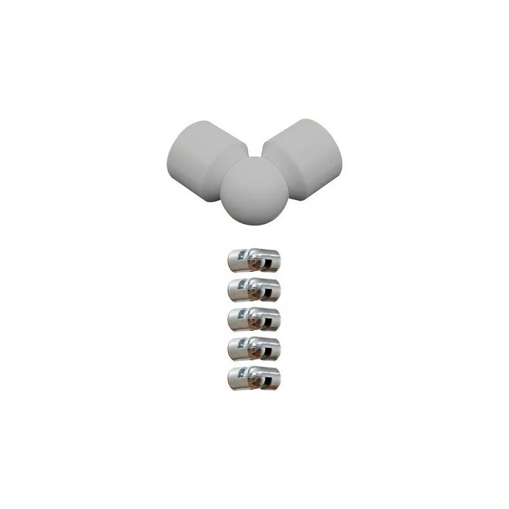 Skyddsräcke Dolle Design Hörnkit kopplar hörnen på Design-räcke för trappavsats till spiraltrappan Montreal. Kitet innehåller en hörnkoppling för ledstången och 5 hörnkopplingsbeslag för de horisontella fyllningarna.