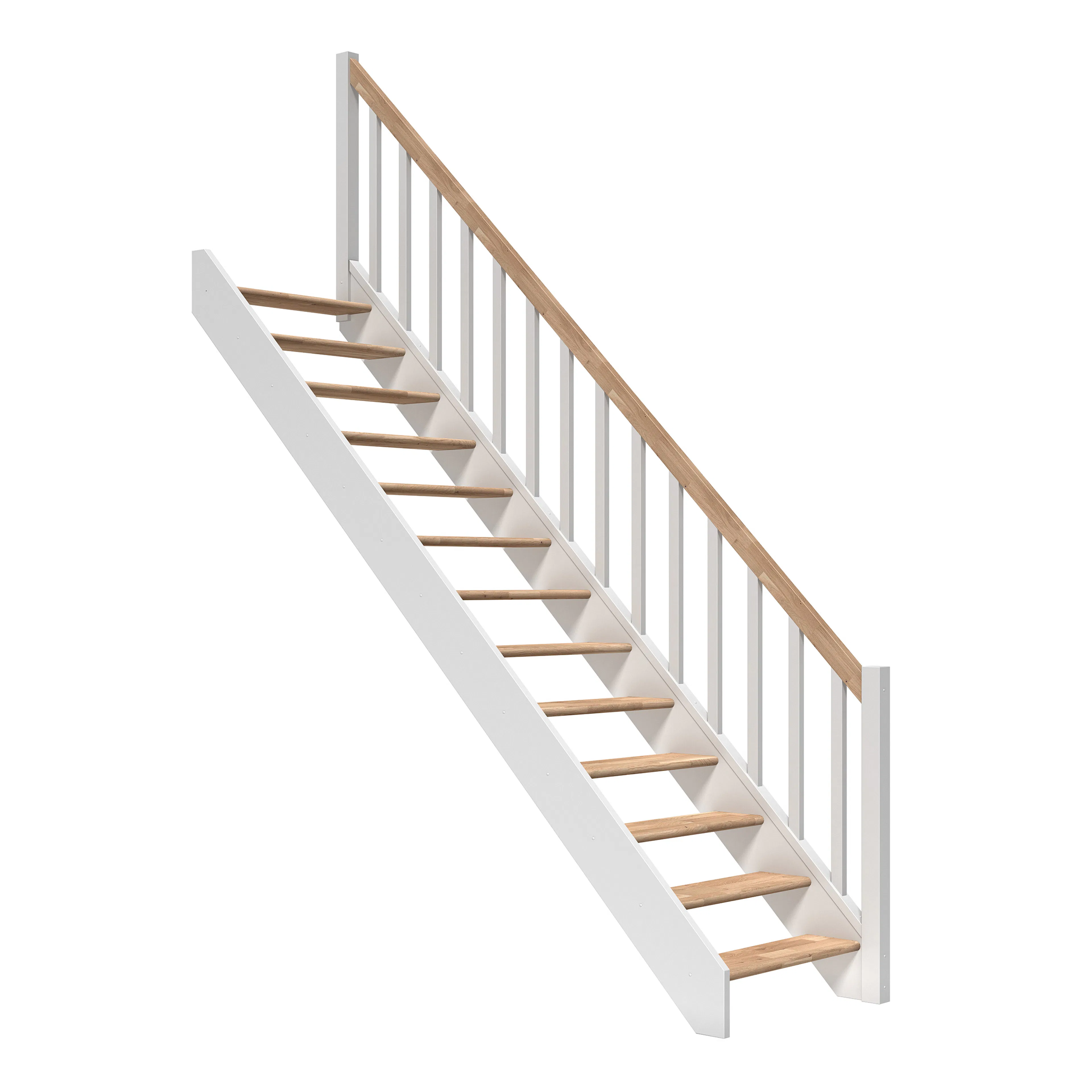 Paris är en platsbesparande trappa från Dolle med träräcke. Trappan är tillverkad i tidlös och enkel design med 14 djupa steg som garanterar hög komfort. Trappan finns i rakt och 1/4 svängt utförande samt med eller utan sättsteg så att du kan välja exakt vad som passar ditt hem. Trappan kan höjdjusteras genom att kapa vangstyckena. Trappan är testad till en max belastning på 150 kg.