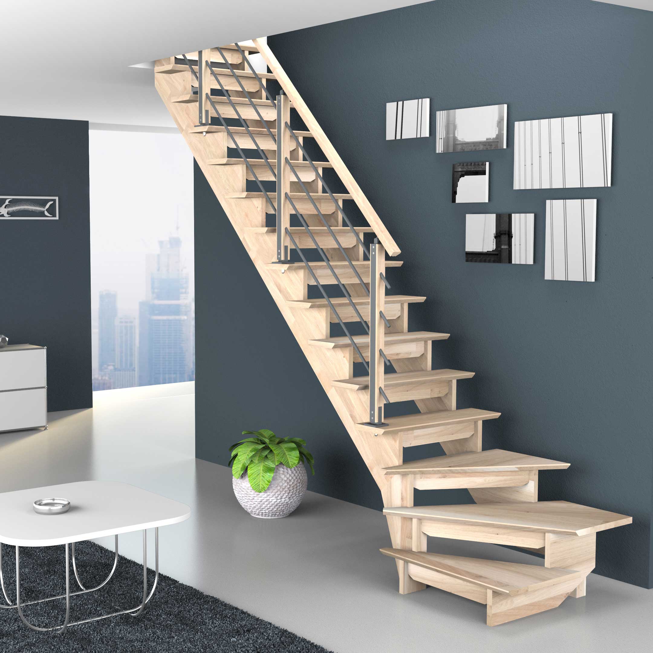 Lofttrappa ByggeraAuvergne L-form inkl. Barnskydd och Trappräcke
