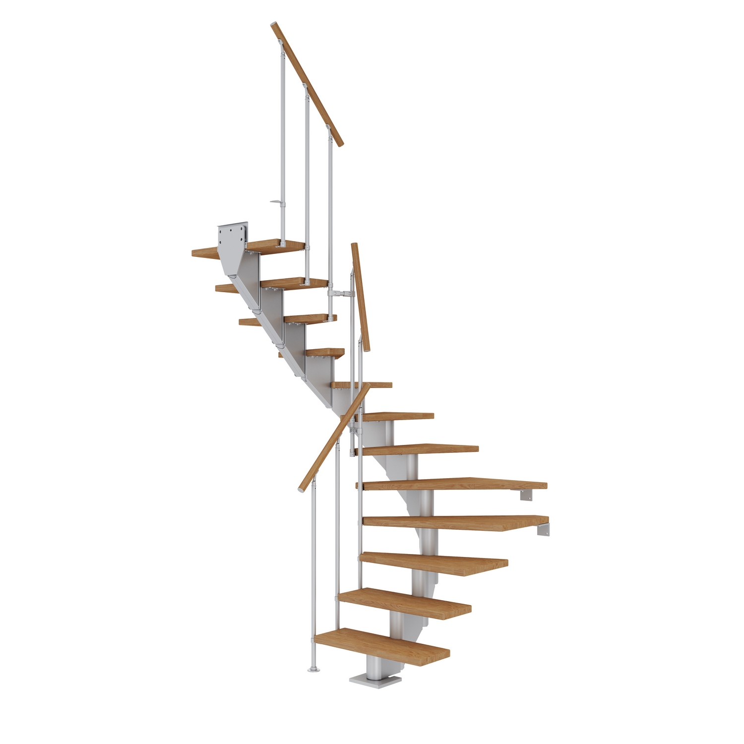 Skapa ett unikt intryck i ditt hem genom att anpassa trappformatet till rummets behov. Hamburg har upp till 14 steg som ger en maximal höjd från golv till golv på 322 cm. Varje steg har en justerbar höjd mellan 18,5 och 21,5 cm. Väggfästen ingår för att säkerställa hög stabilitet i trappan. Breda och djupa trappsteg i kombination med ett stabilt skyddsräcke gör trappan otroligt säker och bekväm att använda.