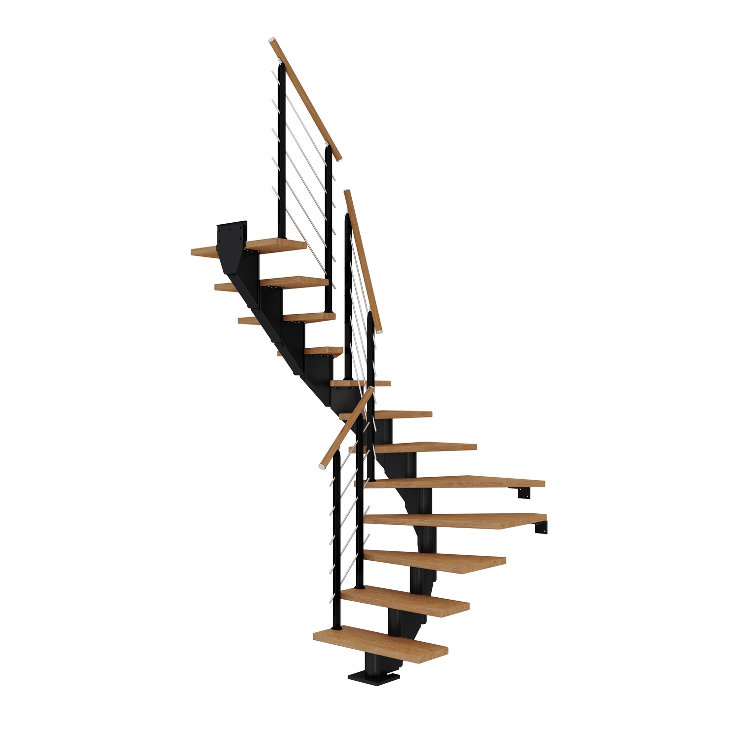Skapa ett unikt intryck i ditt hem genom att anpassa trappformatet till rummets behov. Hamburg har upp till 14 steg som ger en maximal höjd från golv till golv på 322 cm. Varje steg har en justerbar höjd mellan 18,5 och 21,5 cm. Väggfästen ingår för att säkerställa hög stabilitet i trappan. Breda och djupa trappsteg i kombination med ett stabilt skyddsräcke gör trappan otroligt säker och bekväm att använda.