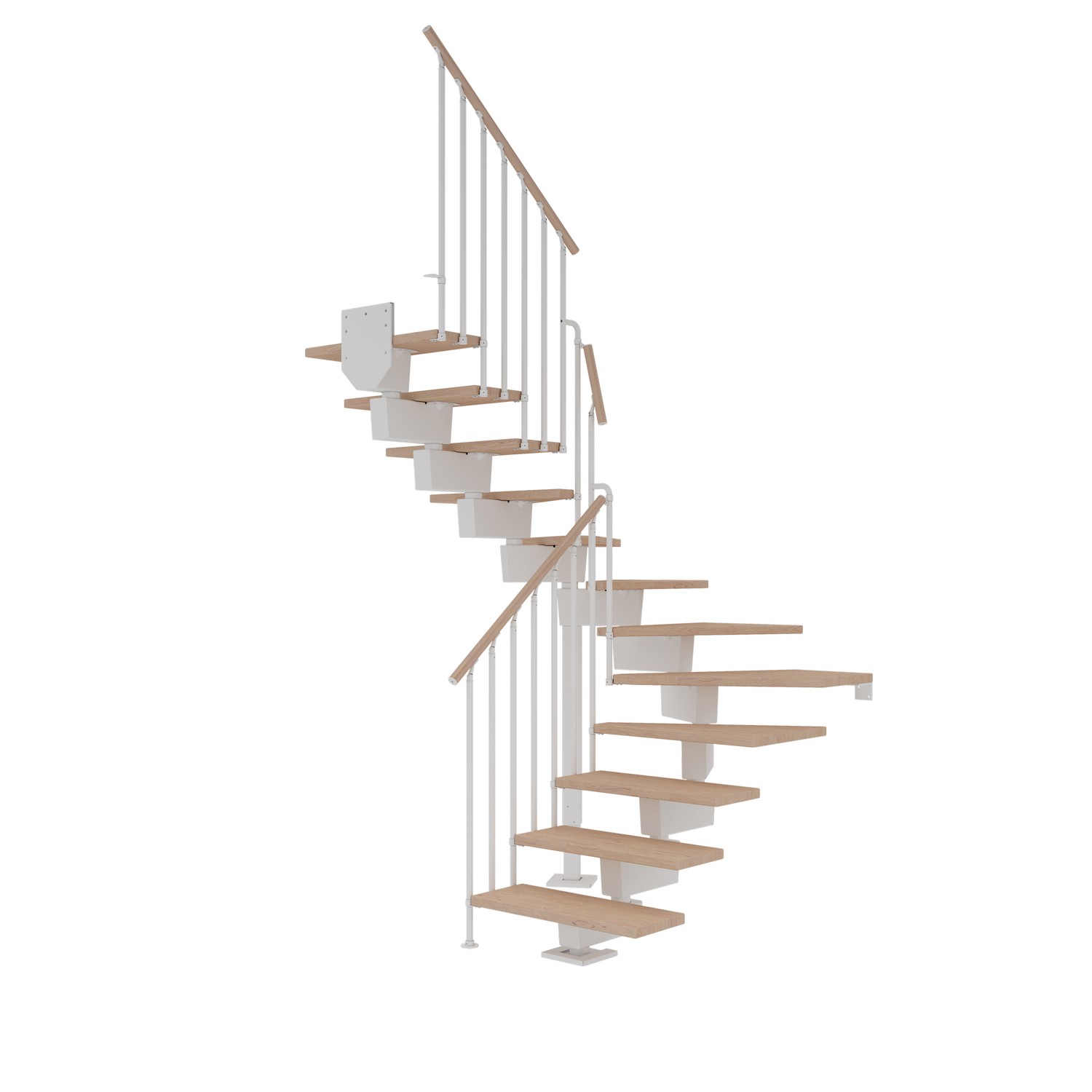 Vinkeltrappa Dolle Dubai Ek Vit Oljad 1/2 Classic III är en modern huvudtrappa med högsta komfort. Dubai är en modern och Skandinavien-inspirerad huvudtrappa, som med sin lätta och eleganta design passar perfekt in i den nordiska, moderna stilen.