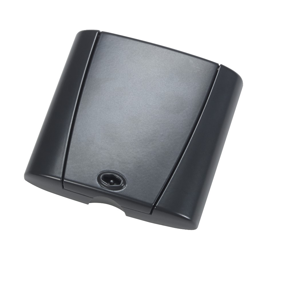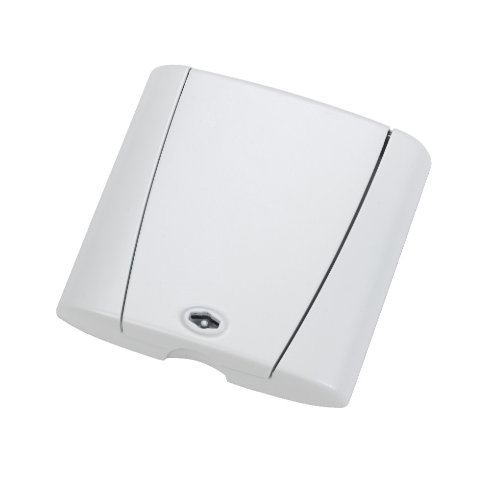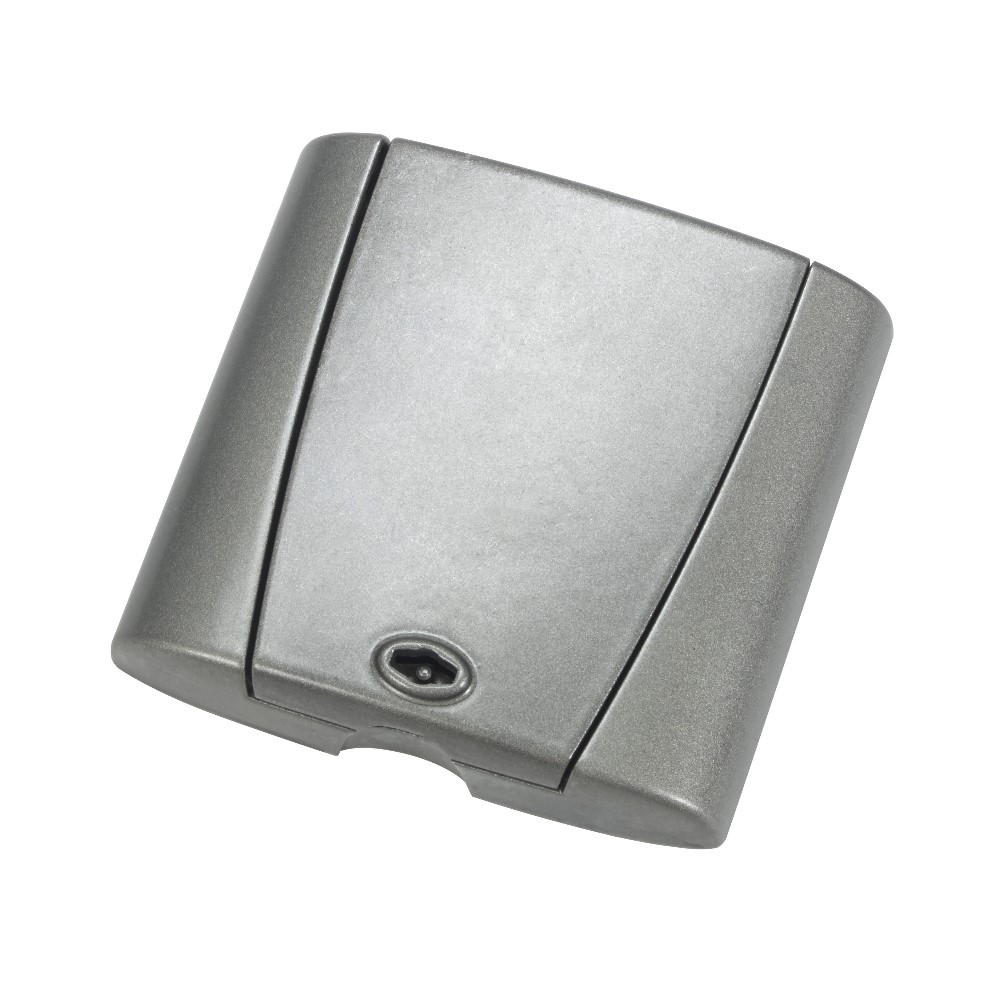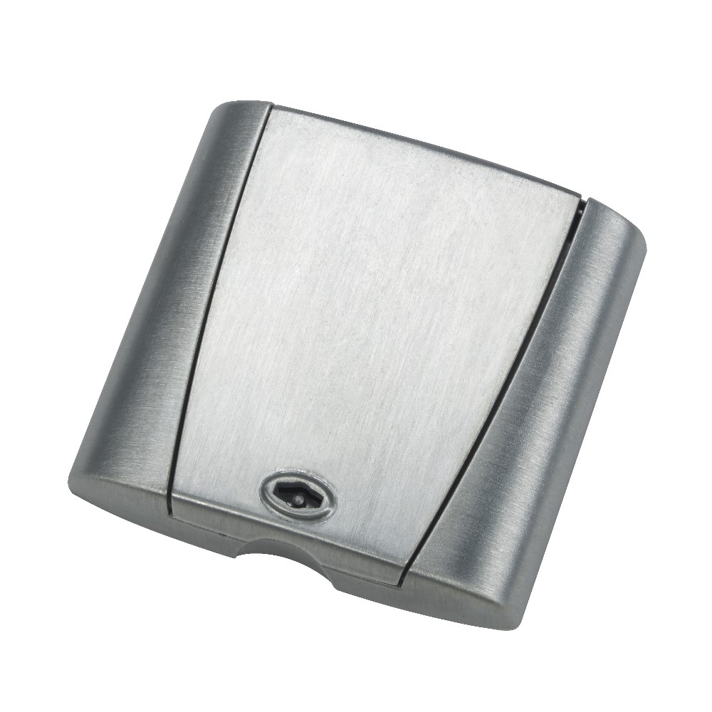 Doslock Optima i metall med lås. Doslockets tidsenliga design liknar en modern strömbrytare.