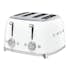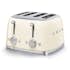 Brödrost Smeg TSF03, inspirerad av 50-talets stil, är gjord av rostfritt stål och spakarna är kromade. Brödrosten har två separata knappar, så du kan rosta antingen två eller fyra brödskivor åt gången. Rostningsnivån kan justeras för varje sida av rostningen separat, så hela familjen får sina favoritbröd på frukostbordet! Extra breda rostningshål gör det lättare att steka tjockare skivor. Den praktiska rullningsfunktionen rostar bara den andra sidan av rullen.