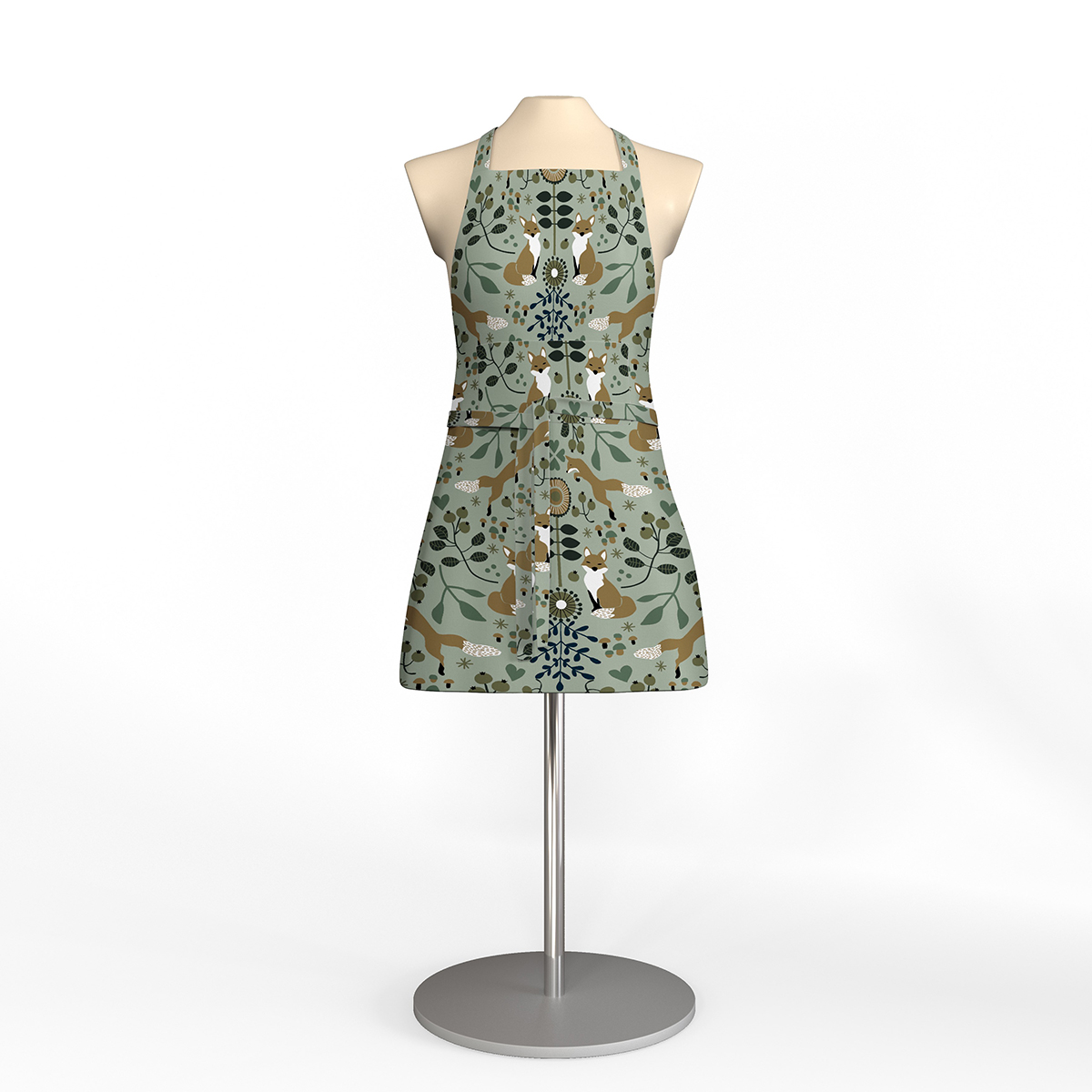 Laga mat i stil med Förkläde Arvidssons Textil Rävstigen. Rävstigen är ett grafiskt småmönstrat tyg.