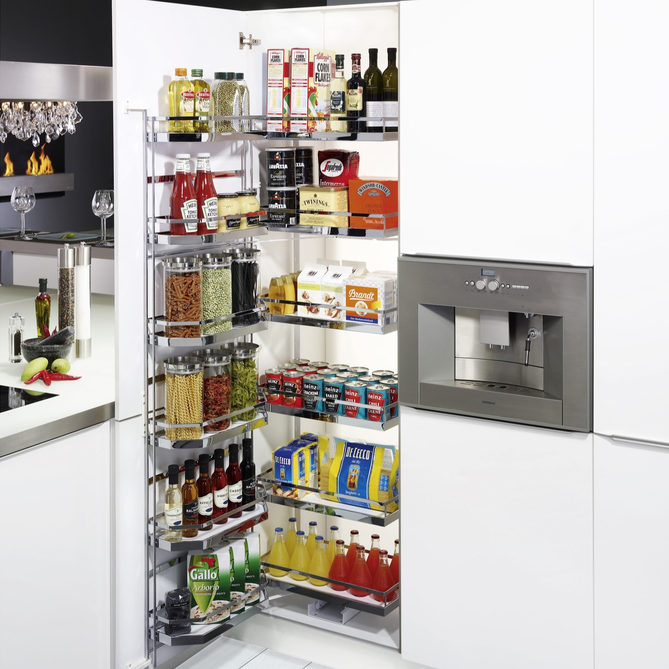 Kesseböhmers högskåpsutdrag Tandem kombinerar design och ingenjörskonst i ett skåp som erbjuder smart lagring på ett lättillgängligt sätt utan att ta stor plats.