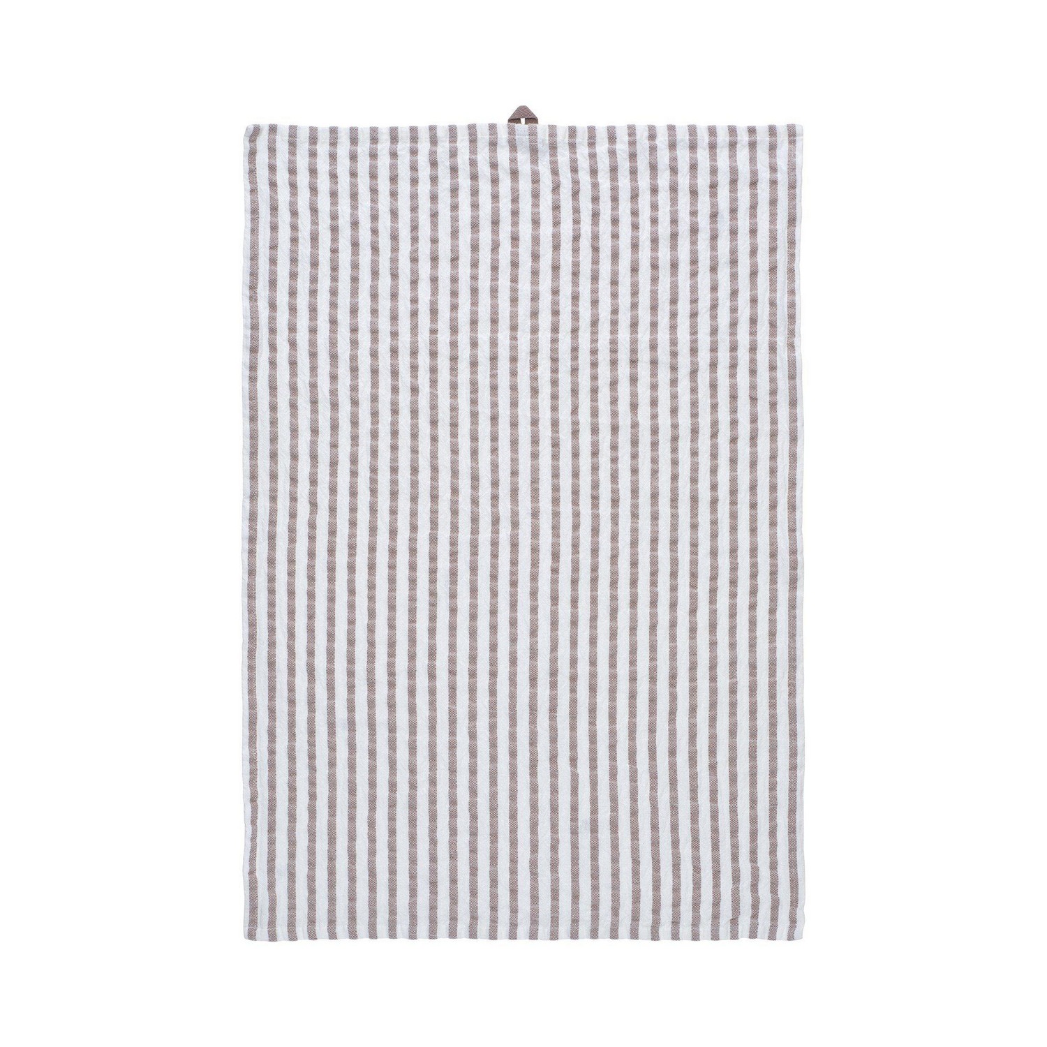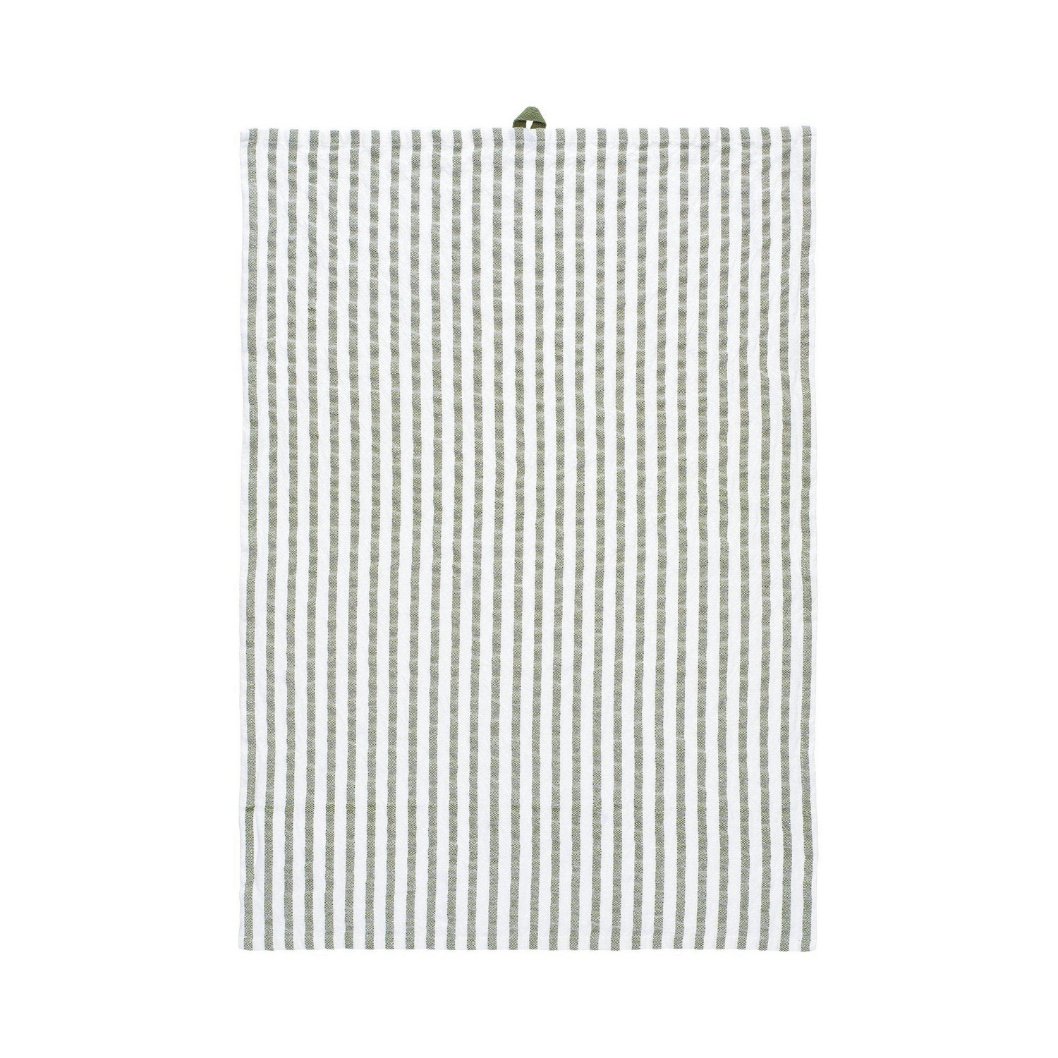 Kökshandduk i mjuk bomullkvalitet, garnfärgad rand och lätt tvättad effekt. Storlek 50x70cm och en färgmatchad hank. Produkten är certifierad enligt STANDARD 100 by OEKO-TEX®. Certifieringen garanterar att produkten är testad och fri från ämnen som kan vara skadliga för hälsan och miljön.