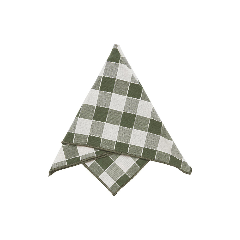 Servett med garnfärgat mönster och overlockade kanter. Att den är garnfärgad gör att servettens baksida är lika fin som dess framsida. Produkten är certifierad enligt STANDARD 100 by OEKO-TEX®. Certifieringen garanterar att produkten är testad och fri från ämnen som kan vara skadliga för hälsan och miljön. 100% Bomull.