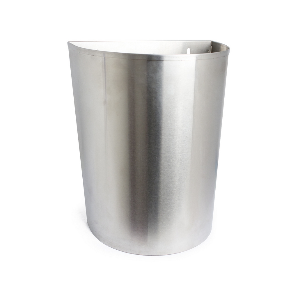 Papperskorg 50 från Habo är en elegant papperskorg av rostfri plåt som levereras med väggfäste för montage på vägg eller på skåpslucka.