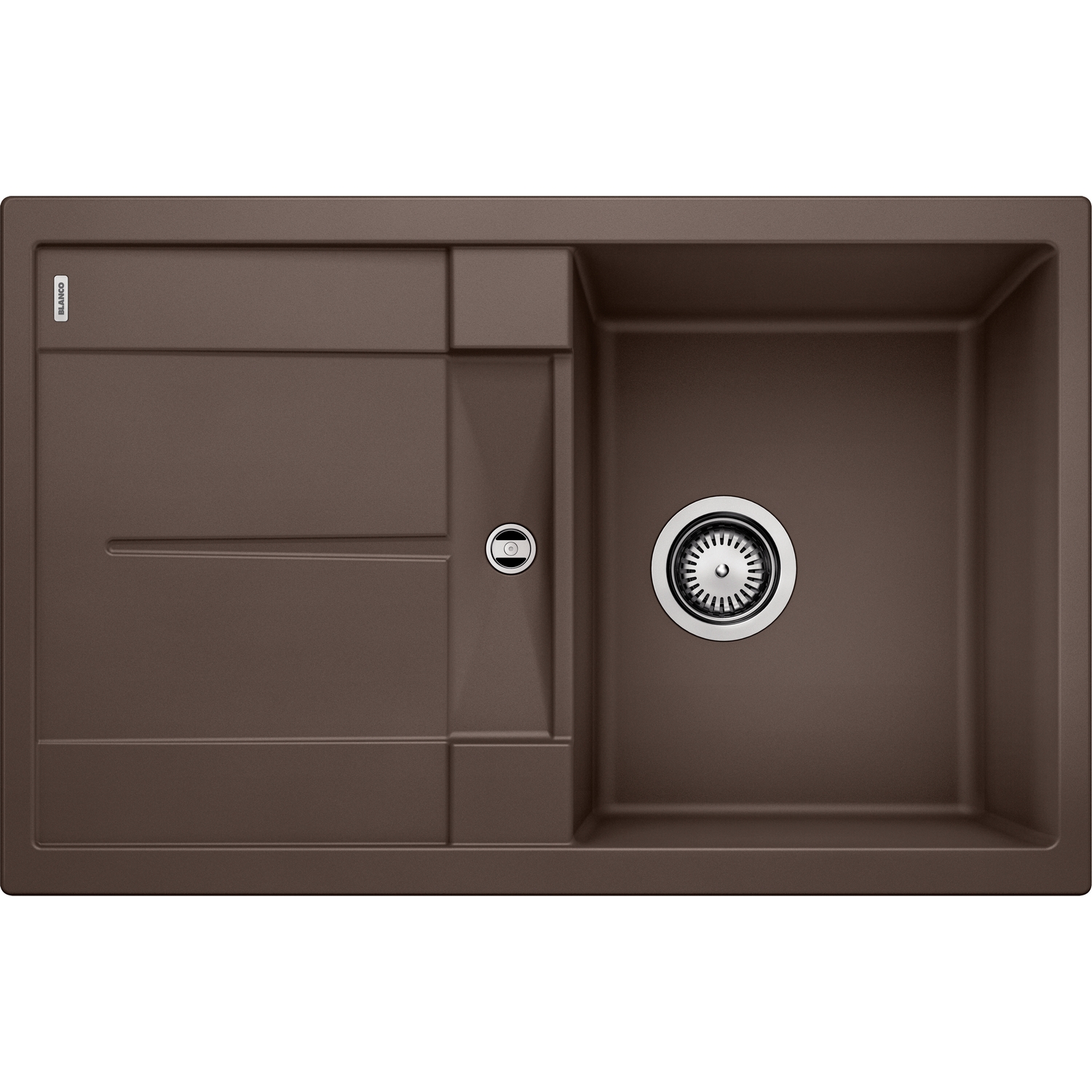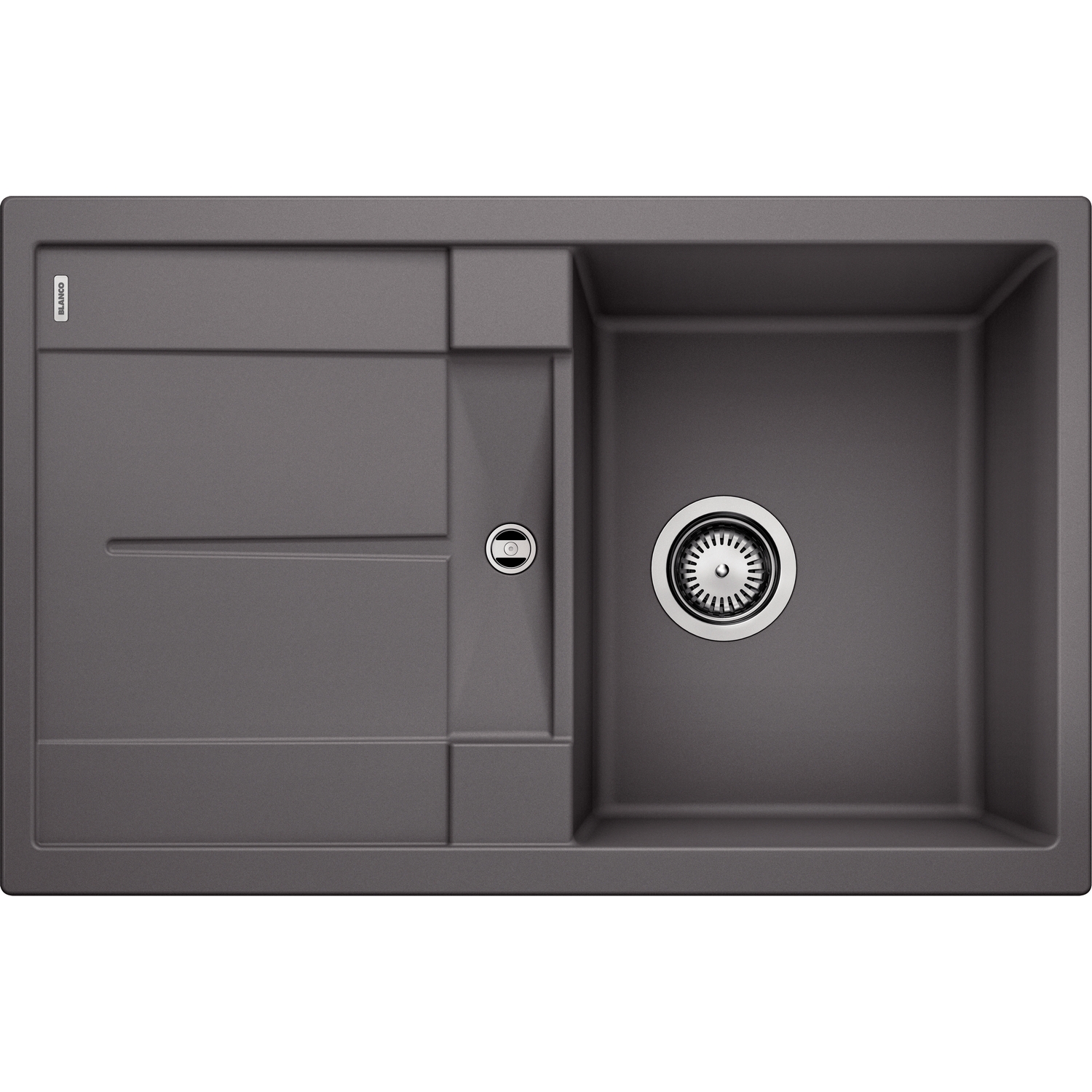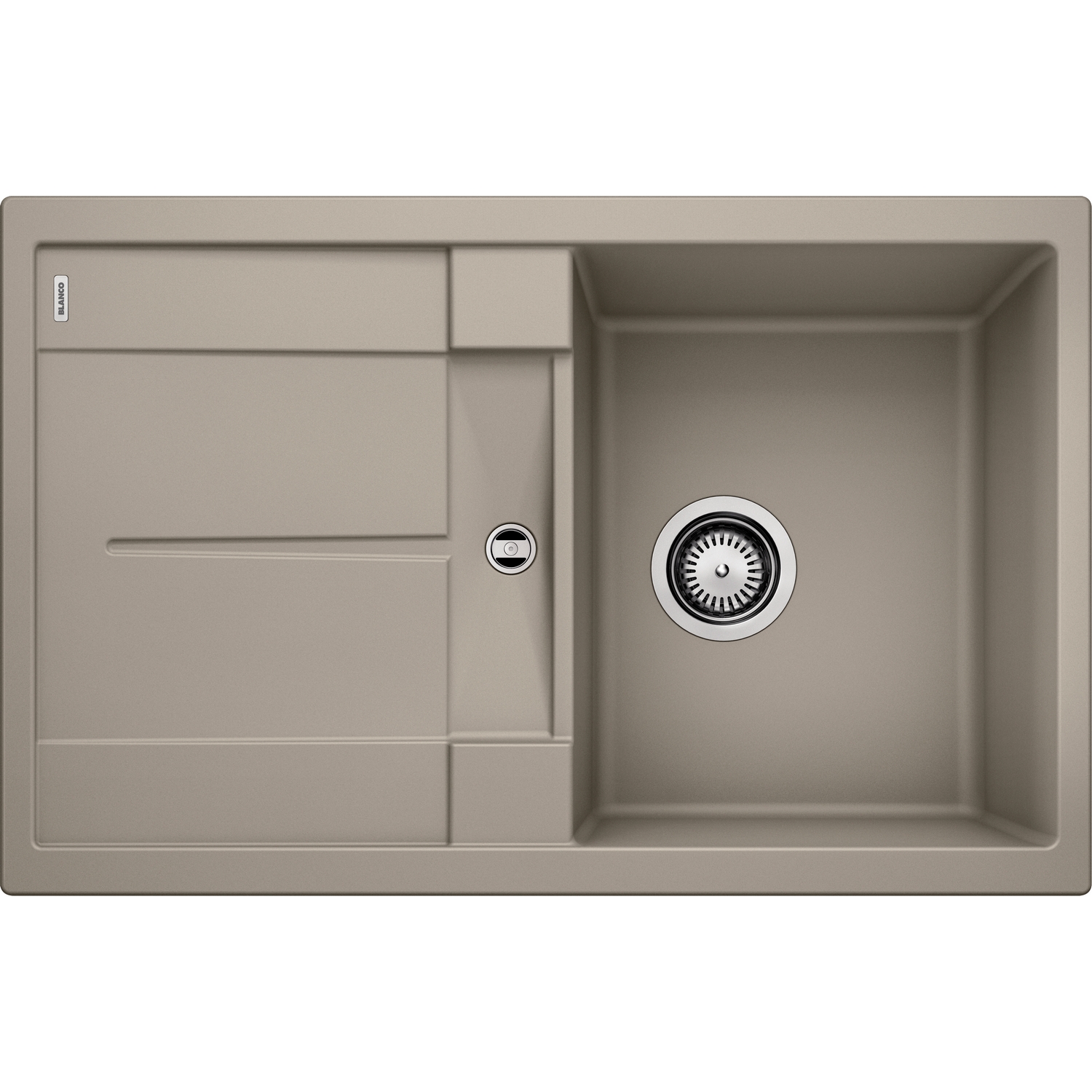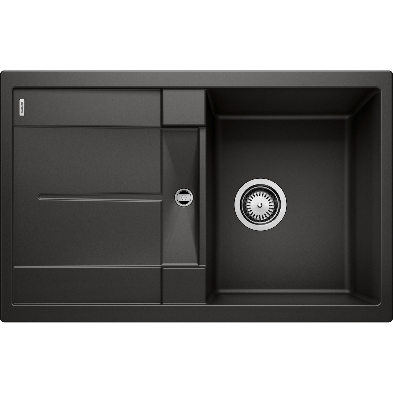 Diskbänk Blanco Metra 45 S är en stilren diskbänk med avrinningsyta för infällnad. Den har 3½" avlopp och korgventil.