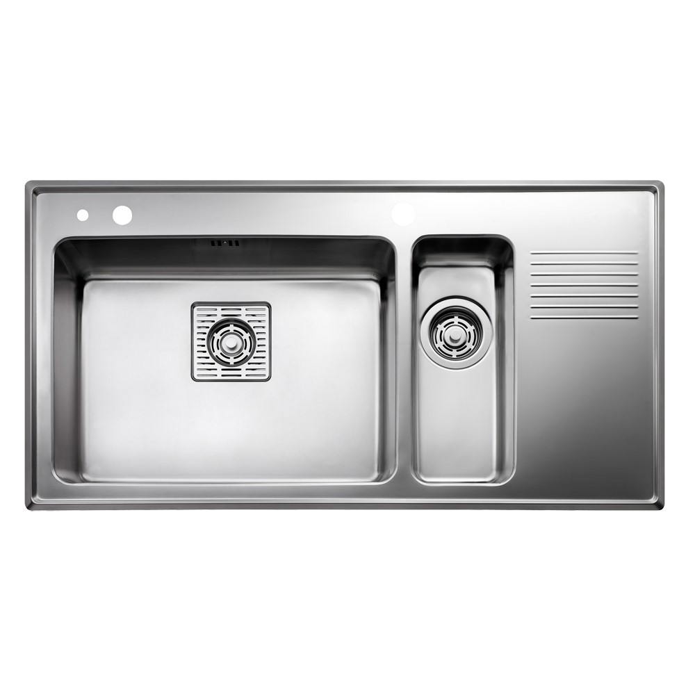 Diskbänk Frame Dubbel 970 för Skåpsbredd 800 från Intra är en insatsbänk för under- eller planlimning med en stor låda och en liten låda. Den är avsedd för minsta skåpsbredd 800 mm. Diskbänken levereras med upplyftsventil i stora lådan, korgventil i lilla lådan. Dessutom medföljer diskmedelspump, rensskål och vattenlås.