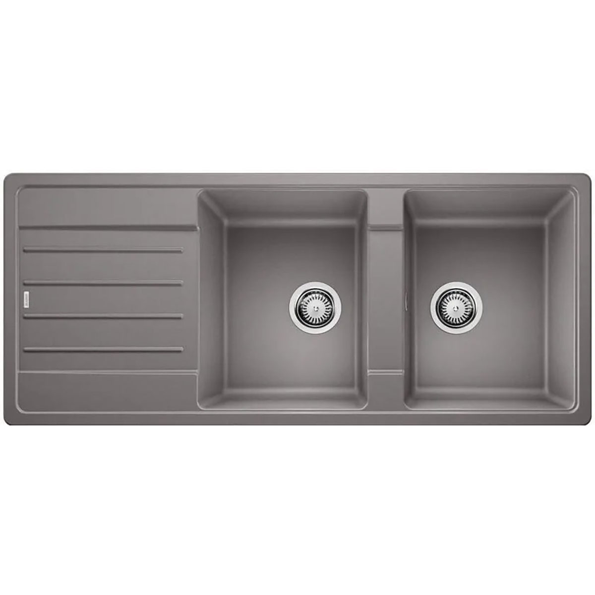 Tidlös design för samtida kök. Disko i kompositmaterialet Silgranit PuraDur i tidlös design. Enkelt montage med infällnad (montage ovanifrån i bänksskivan). En designserie där klassiska linjer kombineras med modern funktionalitet. Rymlig diskho och praktisk bakkant för montage av blandare och tillbehör. Elegant korgventil och integrerat breddavlopp. Blanco Silgranit PuraDur består av 80% granit och är överlägset reptåligt och färgbeständigt.