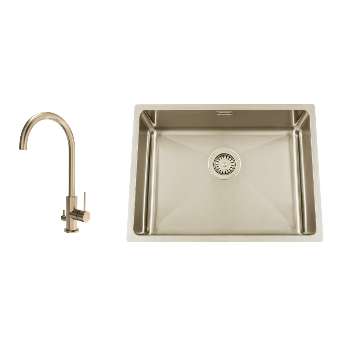 Disklåda Nordic Tech Titan 530 X med Köksblandare Steel Equip D är en kraftig disklåda i 1,2 mm rostfritt stål med snyggt borstad yta för min 600 mm skåp i kombination med en stilren köksblandare från Primy.