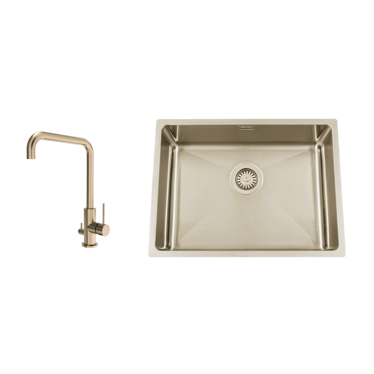 Disklåda Nordic Tech Titan 530 X med Köksblandare Steel Mood D är en kraftig disklåda i 1,2 mm rostfritt stål med snyggt borstad yta för min 600 mm skåp i kombination med en stilren köksblandare från Primy.