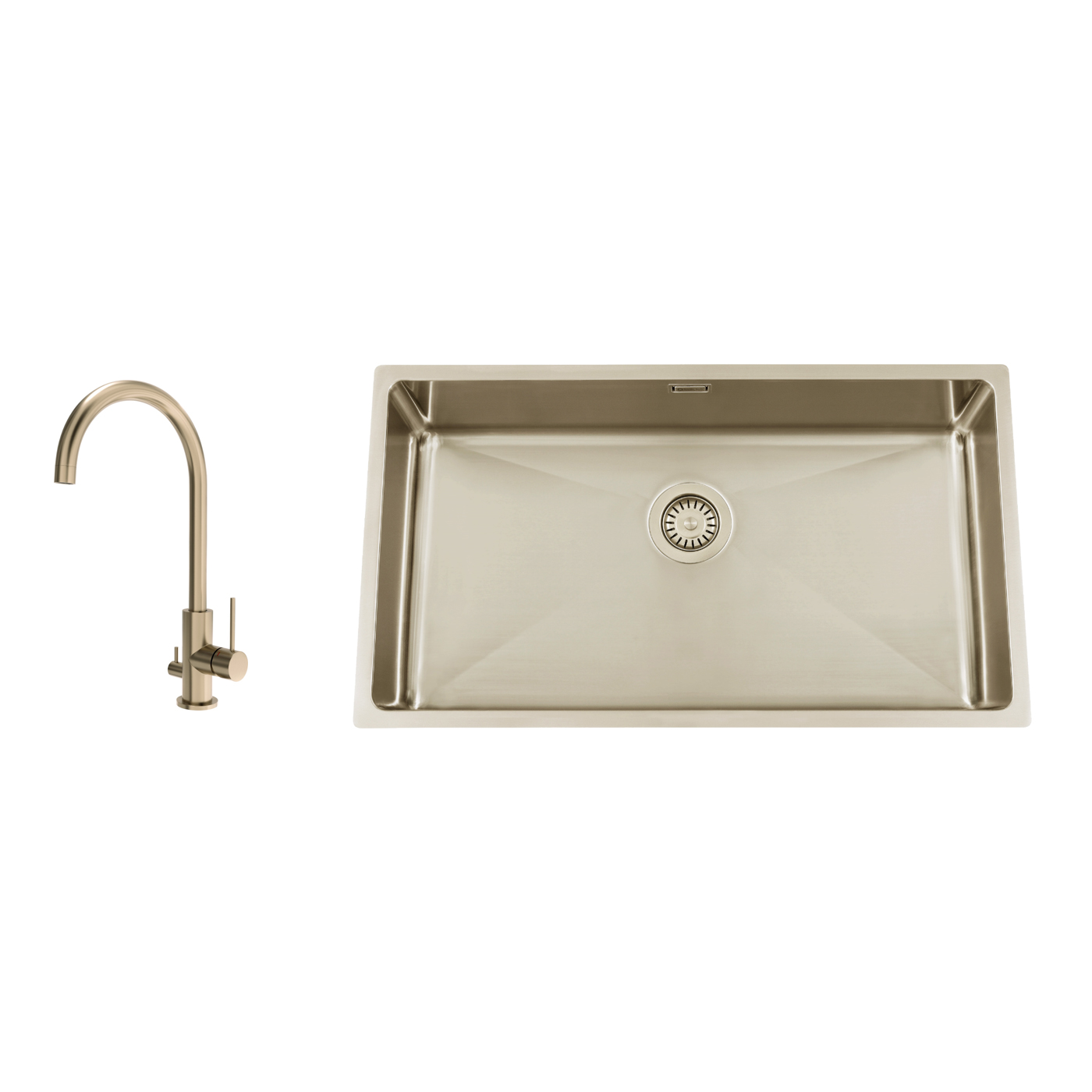 Disklåda Nordic Tech Titan 730 X med Köksblandare Steel Equip D är en kraftig disklåda i 1,2 mm rostfritt stål med snyggt borstad yta för min 800 mm skåp i kombination med en stilren köksblandare från Primy.