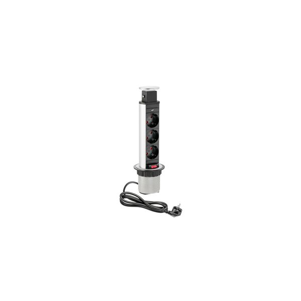 Elpelare GTV AR är en pelare för montering i bänskskiva i köket. Den har 3 jordade eluttag (230V 16 A, 3600 W). Pelaren levereras med en kabel H05VV-F3G x 1,5 mm2 och anslutningssladdens längd är 1,5 m. Håltagningsdiameter 60 mm. Elpelaren är tillverkad av plast.
