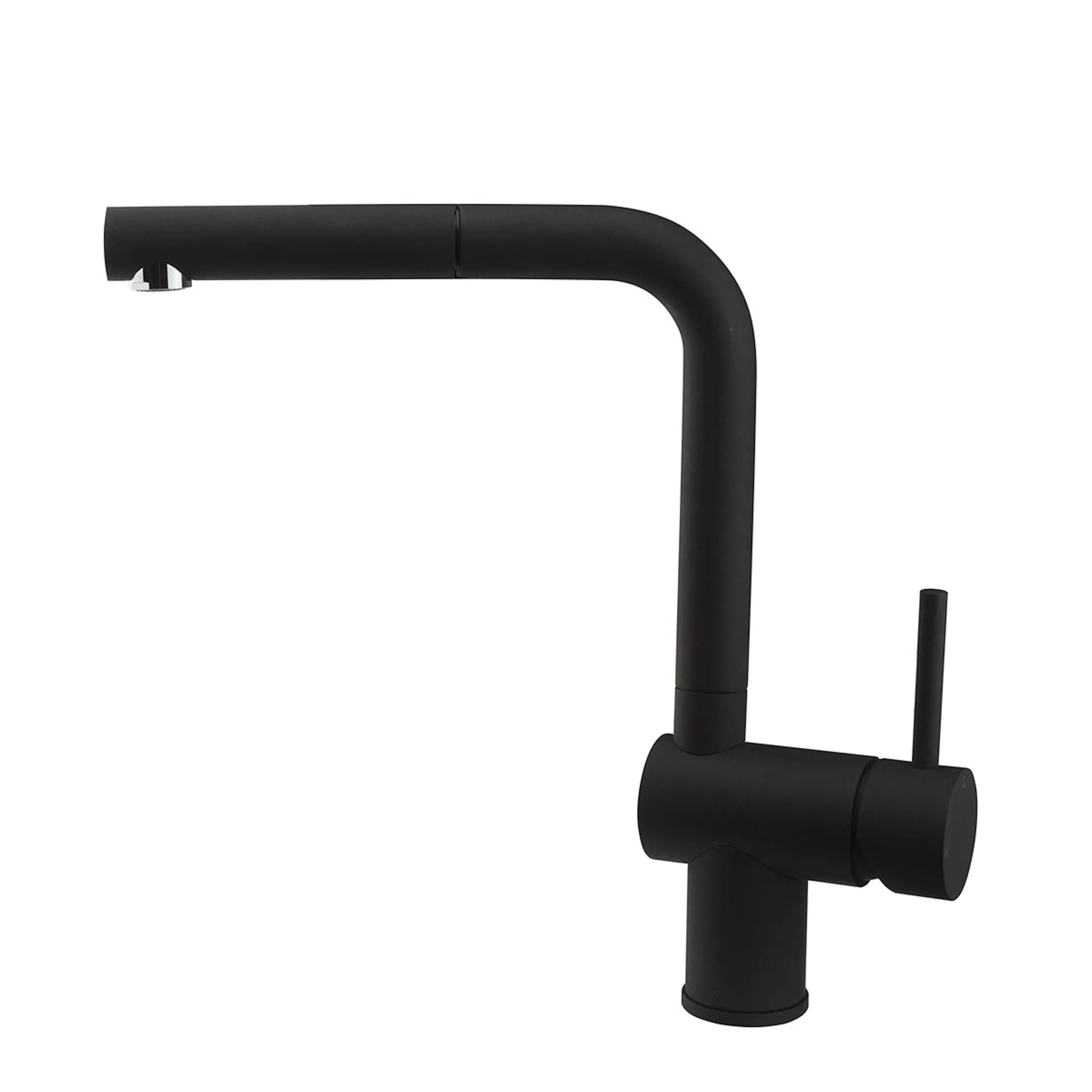 iCrolla Venedig köksblandare i flera olika utförande med utdragbart dusch. Modern L-Shape design. Pipen har begränsning till 160 graders vinkel. Pipen har ett utdragbart munstycke som är intrigerat i pipen med snygg design. Detta gör denna modell mer praktisk och användbar när det kommer till att skölja av saker och att fylla upp kastruller/kärl med mera.
