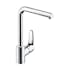 Köksblandare Hansgrohe Focus är en engreppsblandare i krom med svängbar pip och L-utlopp. Köksblandaren har inställningsbar stråle och keramisk blandarsystem.