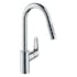 Köksblandare Hansgrohe Focus 240 är en ettgreppsblandare i krom med vertikalt handtag för bekväm användning. Den höga och utdragbara pipen underlättar arbetet i köket och ger lite av storkökskänsla. Blandaren har två stycken stråltyper - laminär stråle och duschstråle. Munstycket på pipen är dessutom utrustad med Quick Clean för enklare rengöring. Köksblandaren Hansgrohe Focus 240 levereras utan diskmaskinsavstängning, går att köpa till separat som tillval.