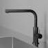 Köksblandare Scandtap Steel Accent 90 med slim formgivning och utdragbart munstycke. Modern design som utmärks av pipens nittiogradiga vinkel. Designen underlättar installation i t.ex. köksmiljöer med låga hyllor eller överskåp.