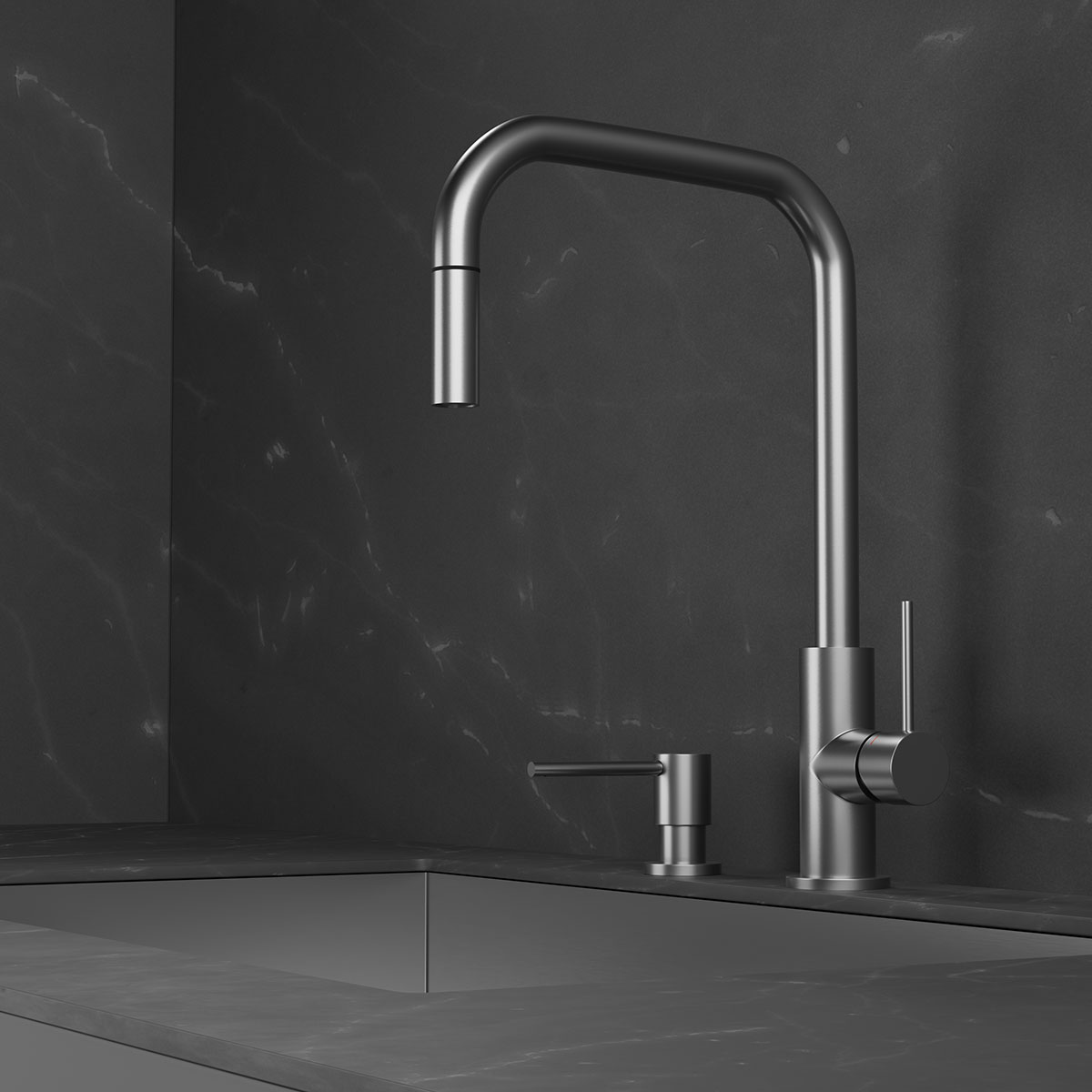 Köksblandare ScandtapSteel Accent Square med Utdragbar Pip