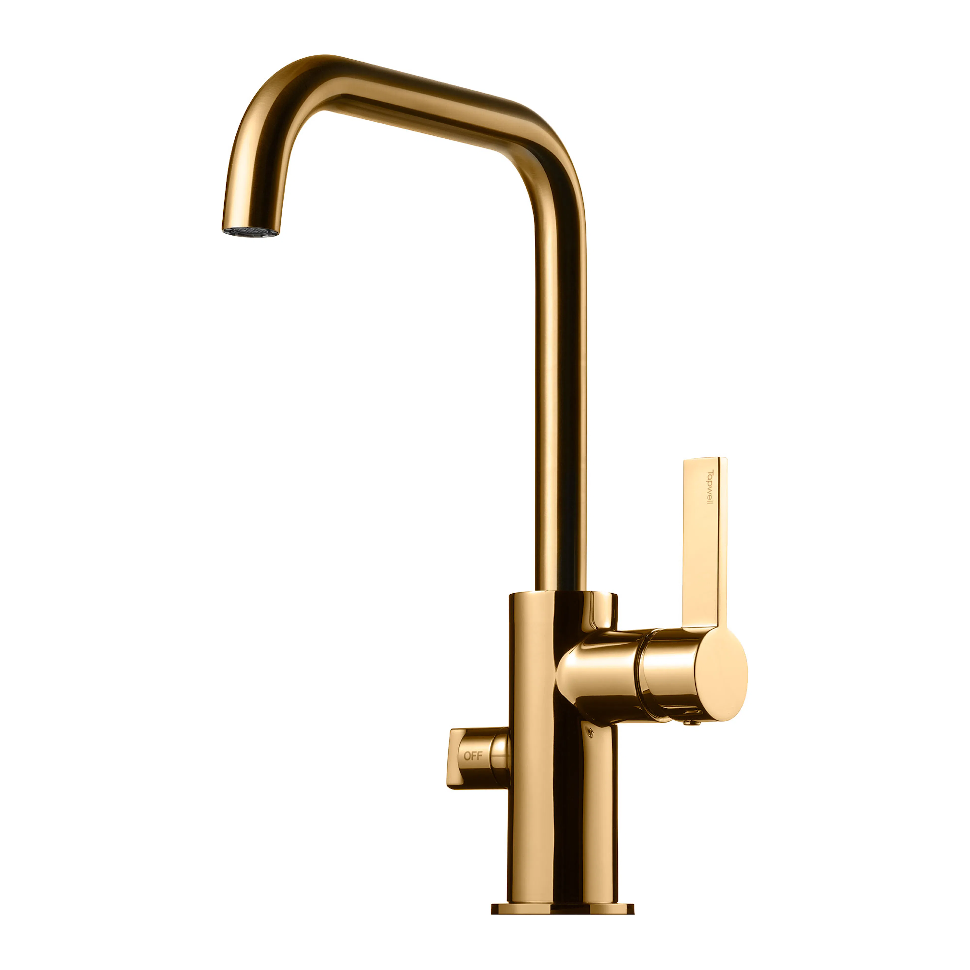 Köksblandare Tapwell ARM584 med diskmaskinsavstängning och hög, svängbar pip. Pipens svängradie går att begränsa till mellan 60 och 270 grader med 15 graders intervaller.