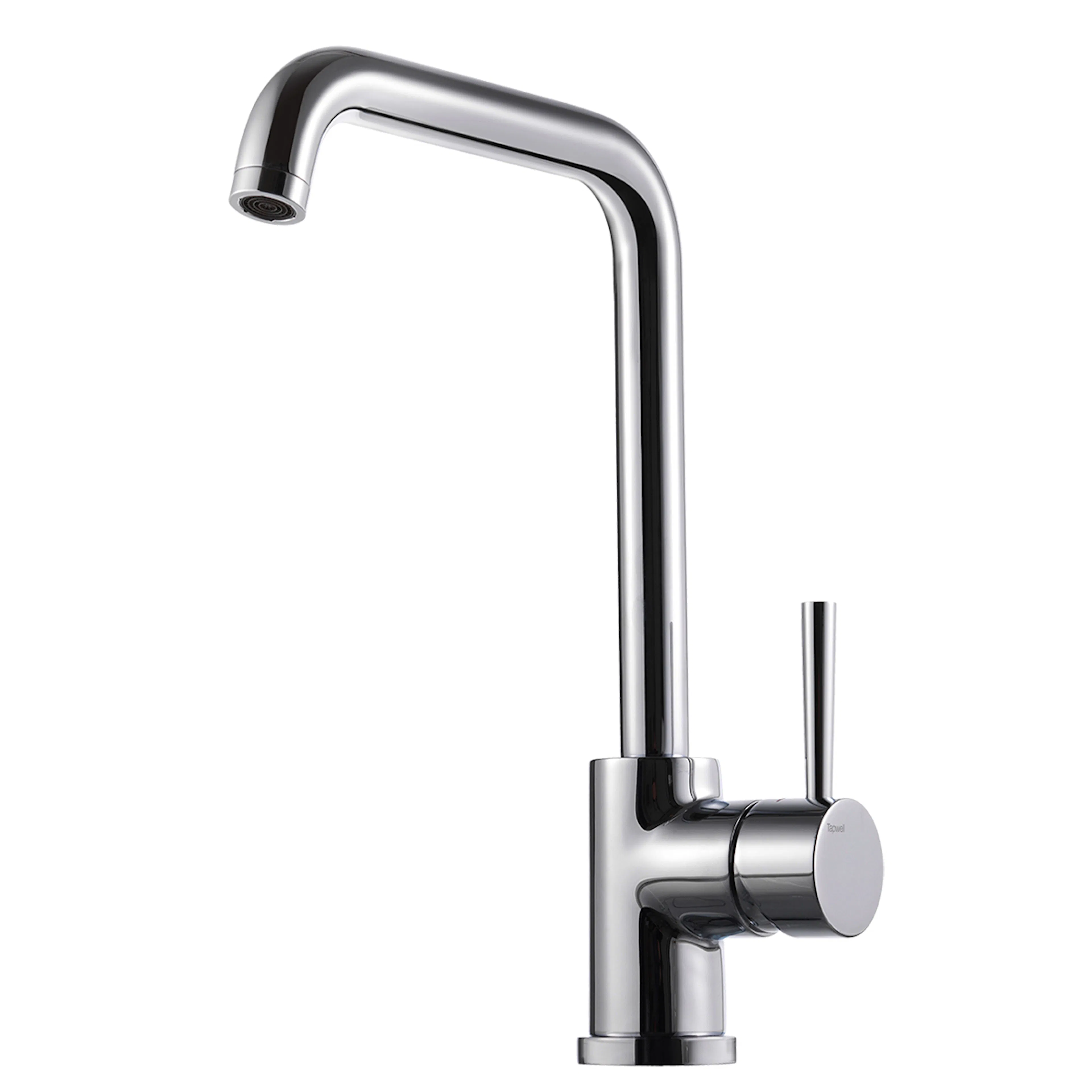 Köksblandare Tapwell EVO 980 med joystickgrepp är en ettgreppsblandare med cylindriska former och stilren design så passar den in i de flesta kök. Den höga och svängbara pipen underlättar arbetet i köket. Den levereras utan diskmaskinsavstängning, detta kan köpas till separat som tillval.