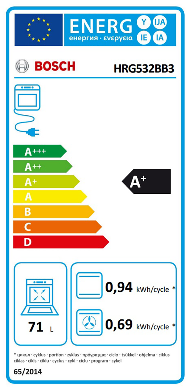 | Energiförbrukning för varmluftsugn | 0.69 kWh |
